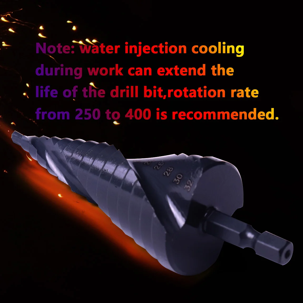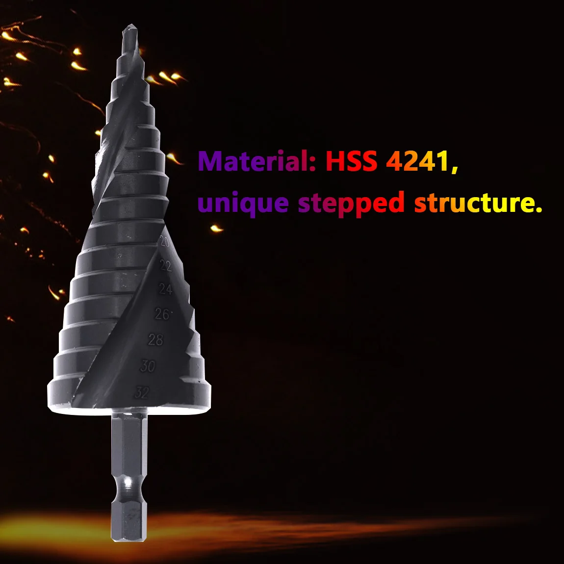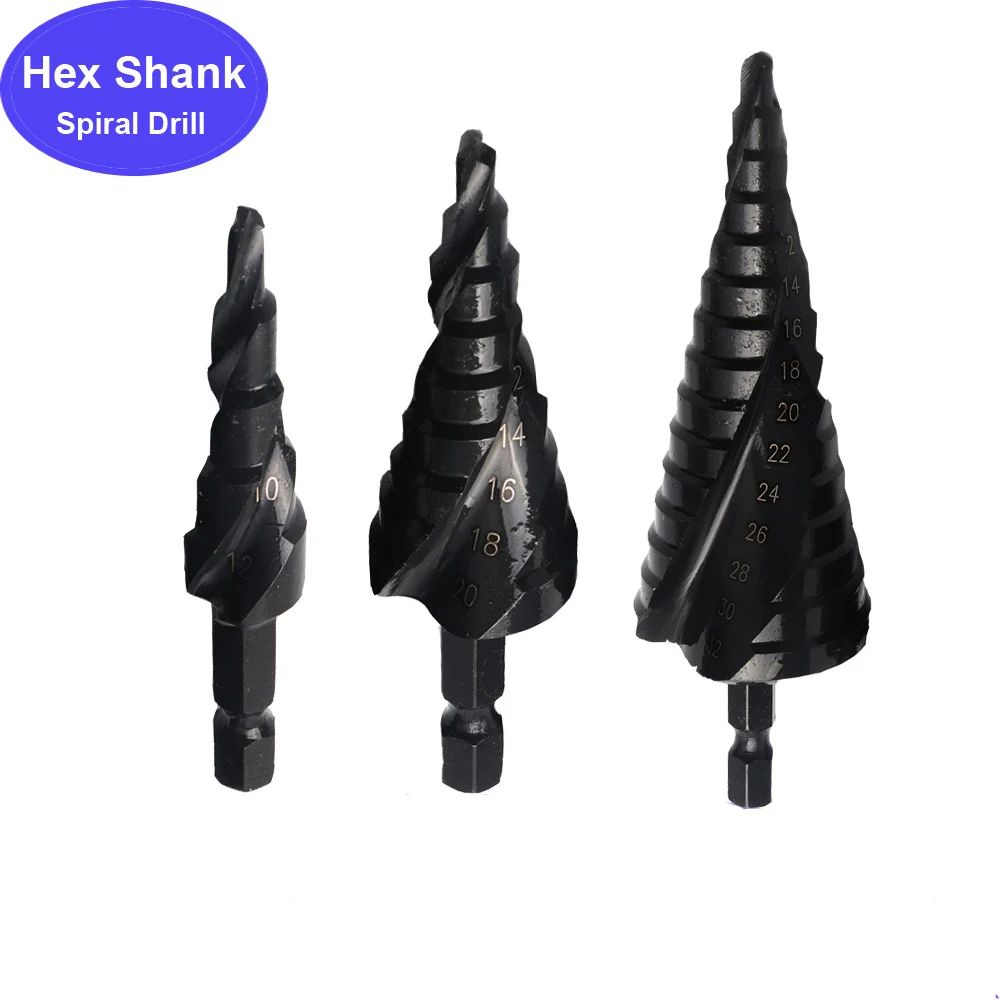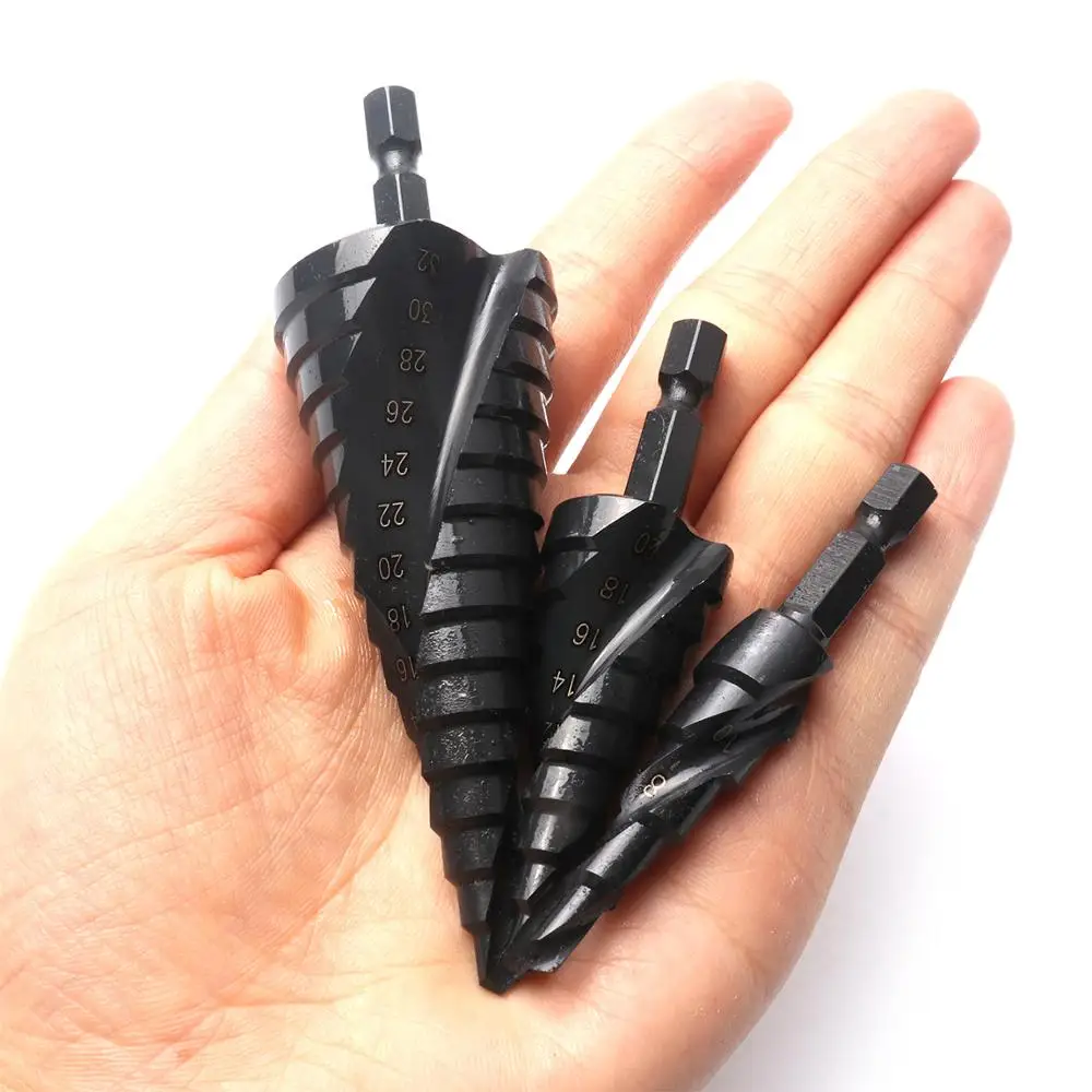 Набор ступенчатых сверл, 3 шт., быстрорежущая сталь, 4-12, 4-20, 4-32 мм, ступенчатое сверло из нитрида, спиральный ступенчатый резак для дерева и металла, металлический Конусный, шестигранный хвостовик