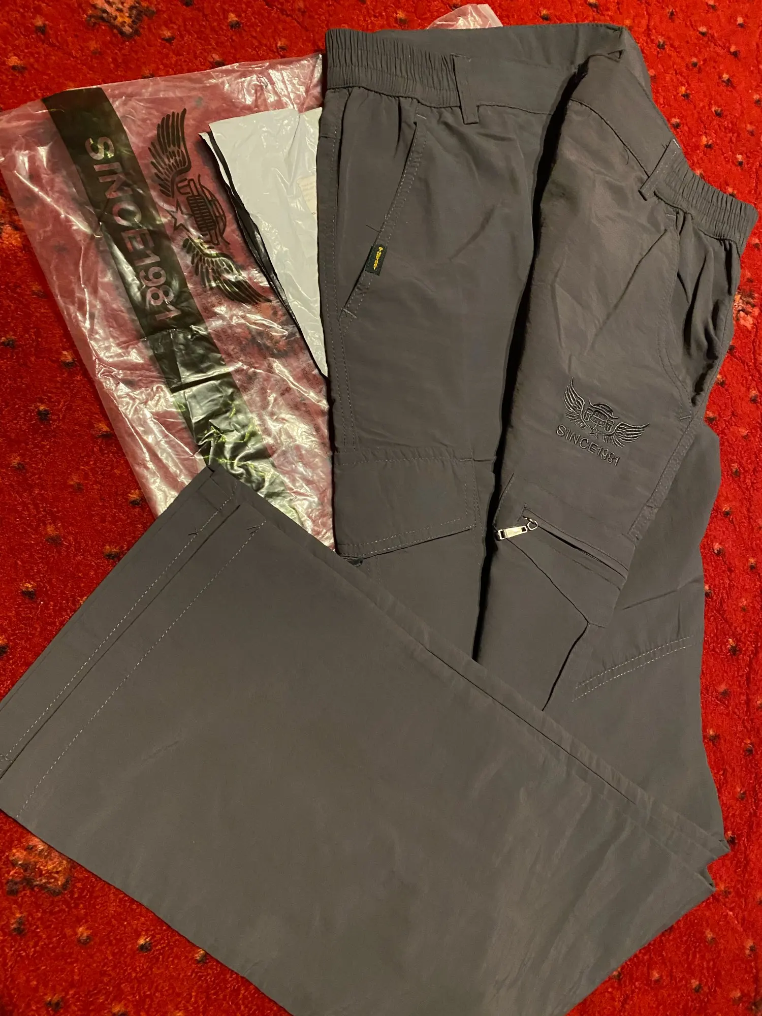 Прибыла как крошечная, легкая упаковка, почти не достаточно большая, чтобы содержать человека ХЭНКИ. Я еще не носил и не Стирал брюки, но они водоотталкивающие.