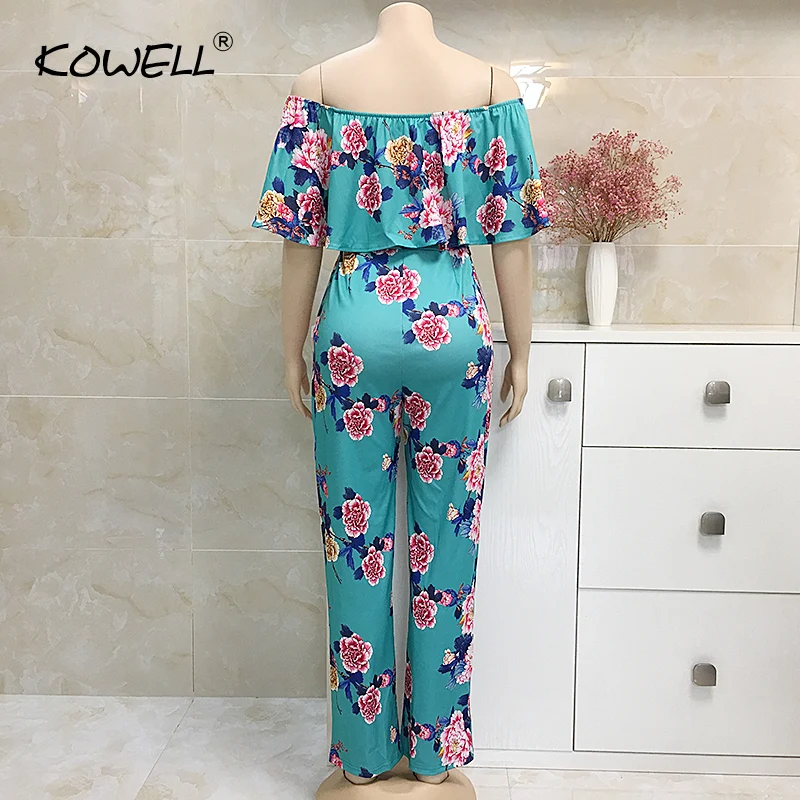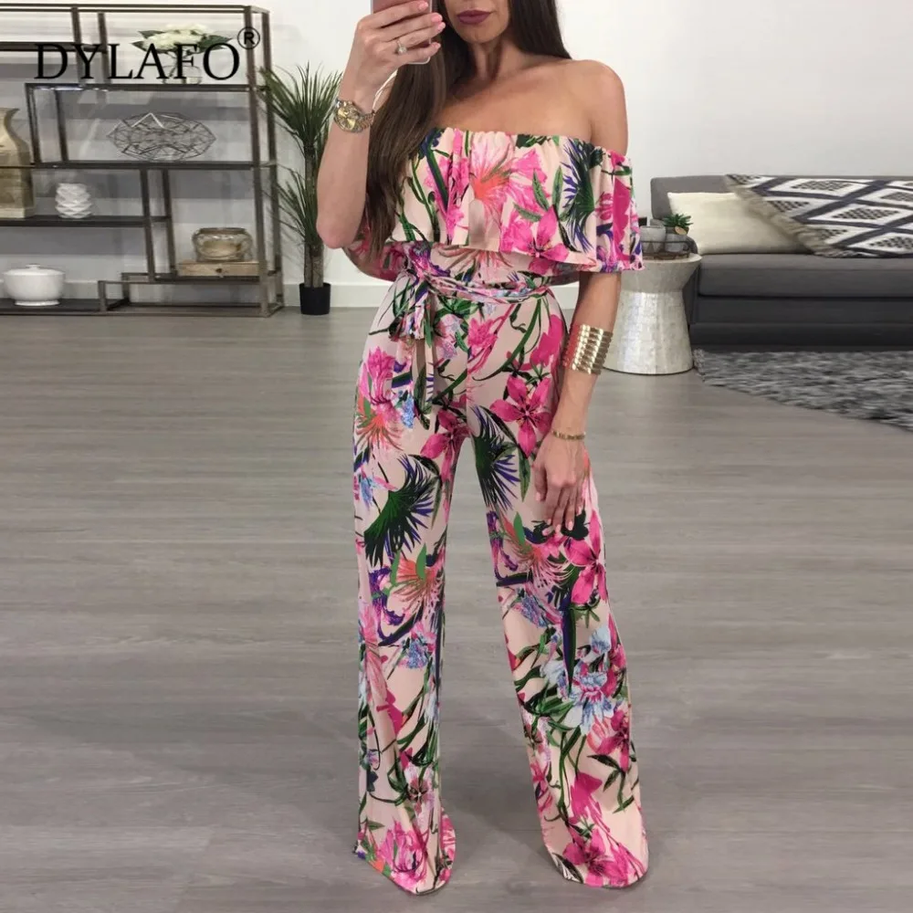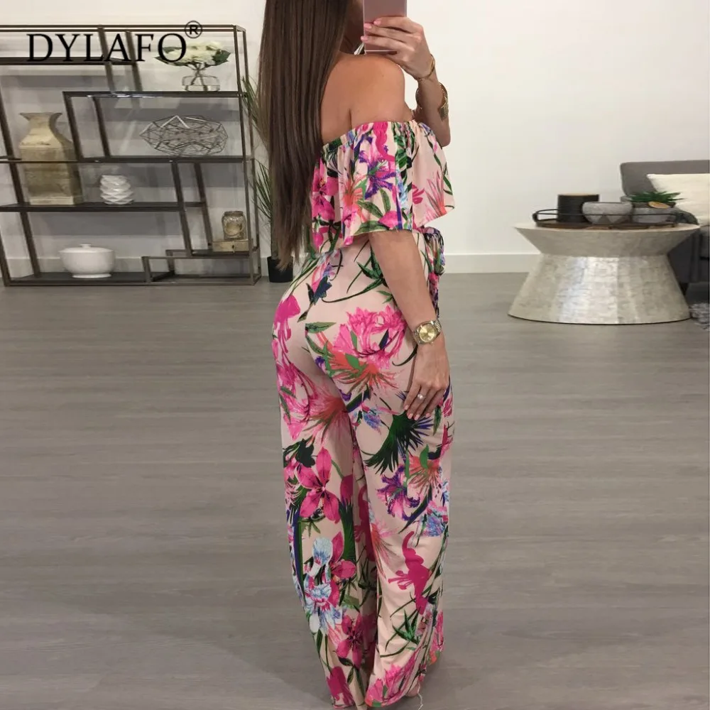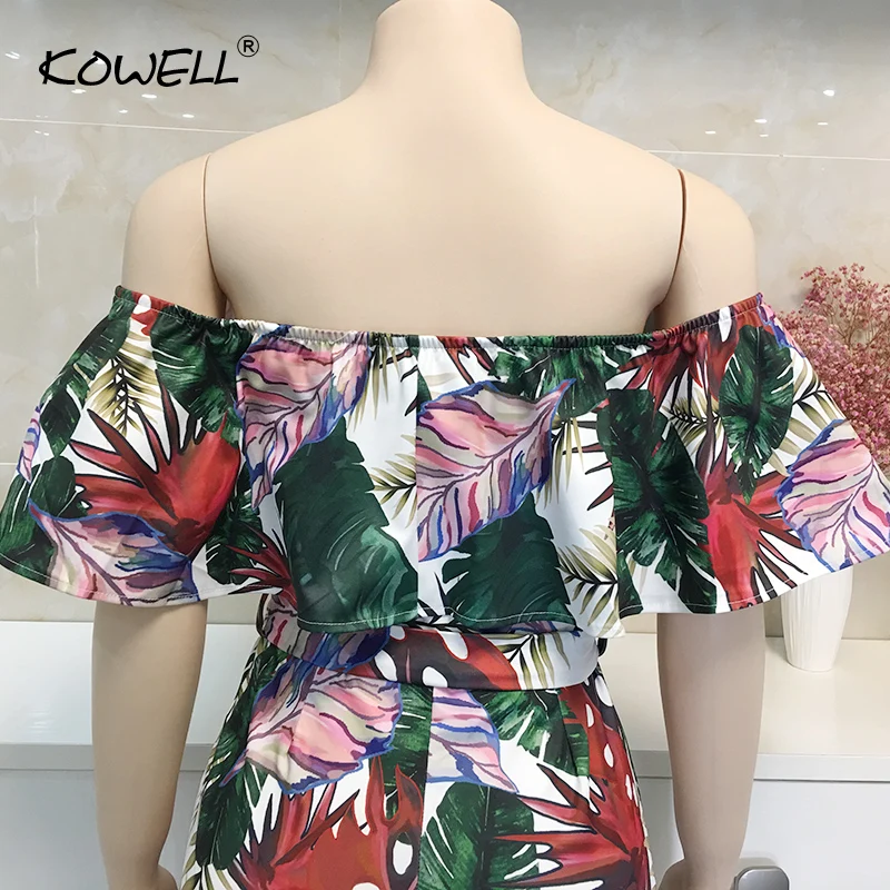 Комбинезон женский в богемном стиле, пляжный размера плюс с открытыми плечами, с принтом пальм, на шнуровке, сексуальные комбинезоны