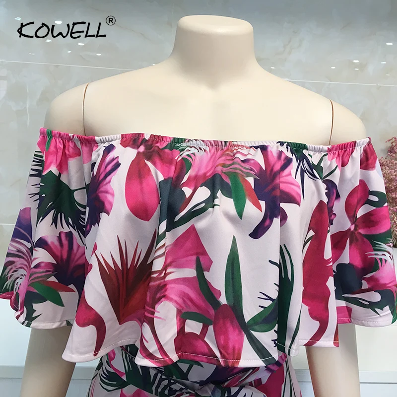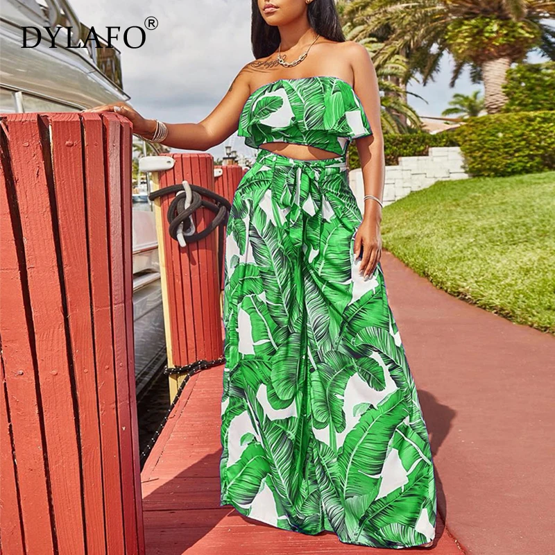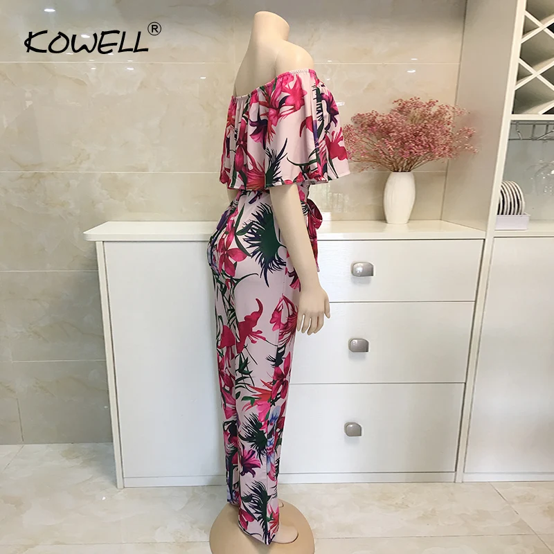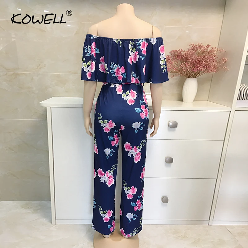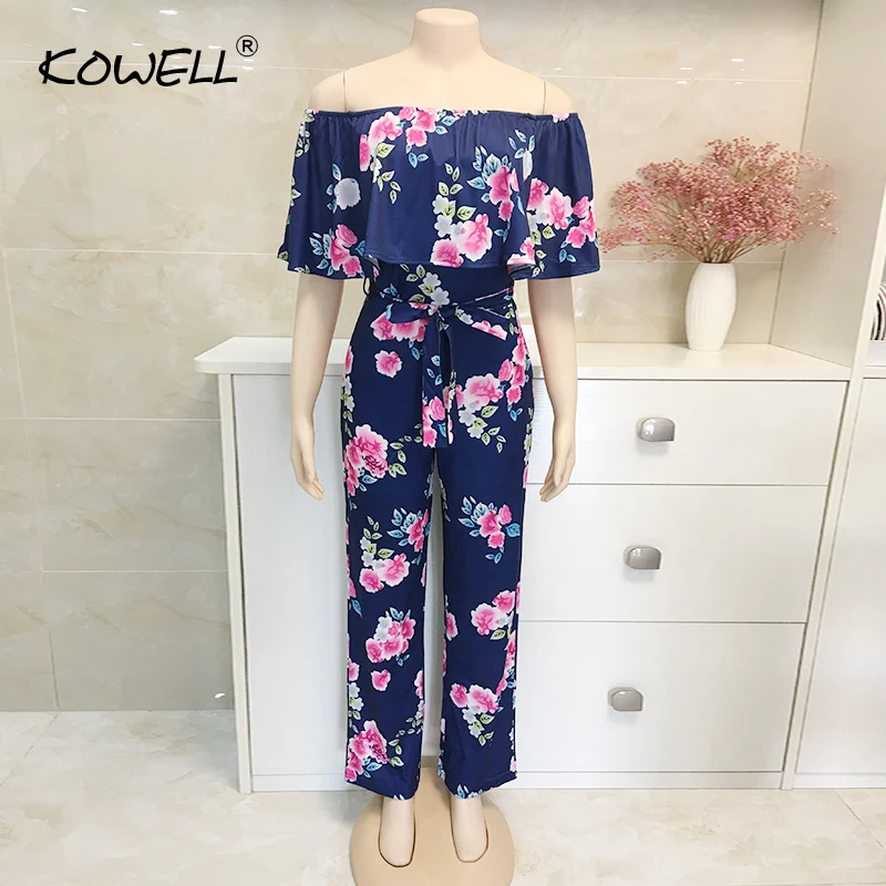 Комбинезон женский в богемном стиле, пляжный размера плюс с открытыми плечами, с принтом пальм, на шнуровке, сексуальные комбинезоны