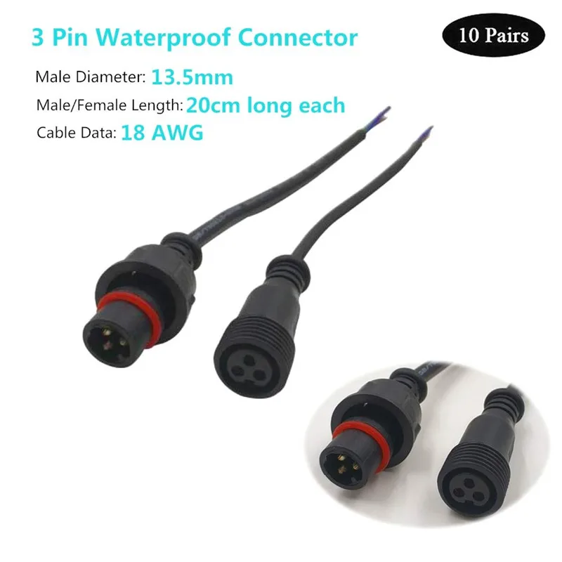 1 x светодиодный 3 Pin Водонепроницаемый соединительный кабель с разъемом кабеля