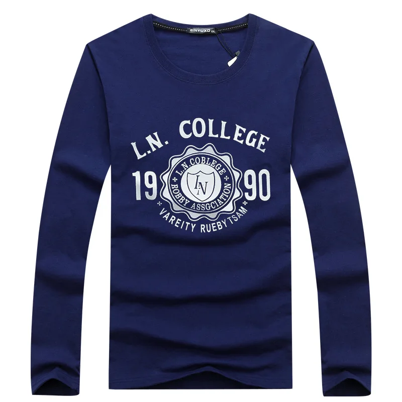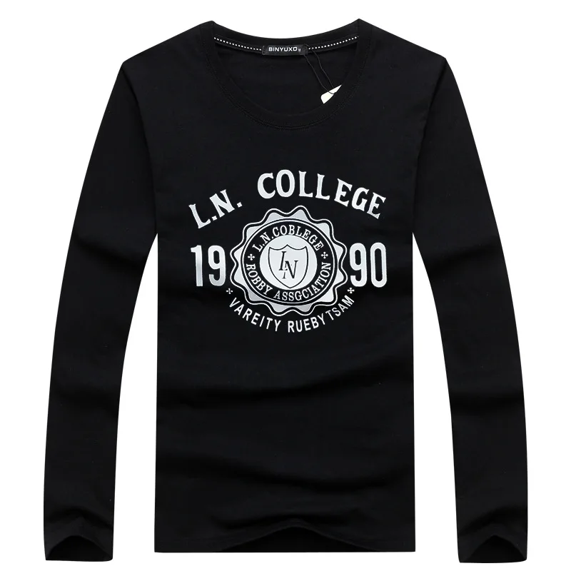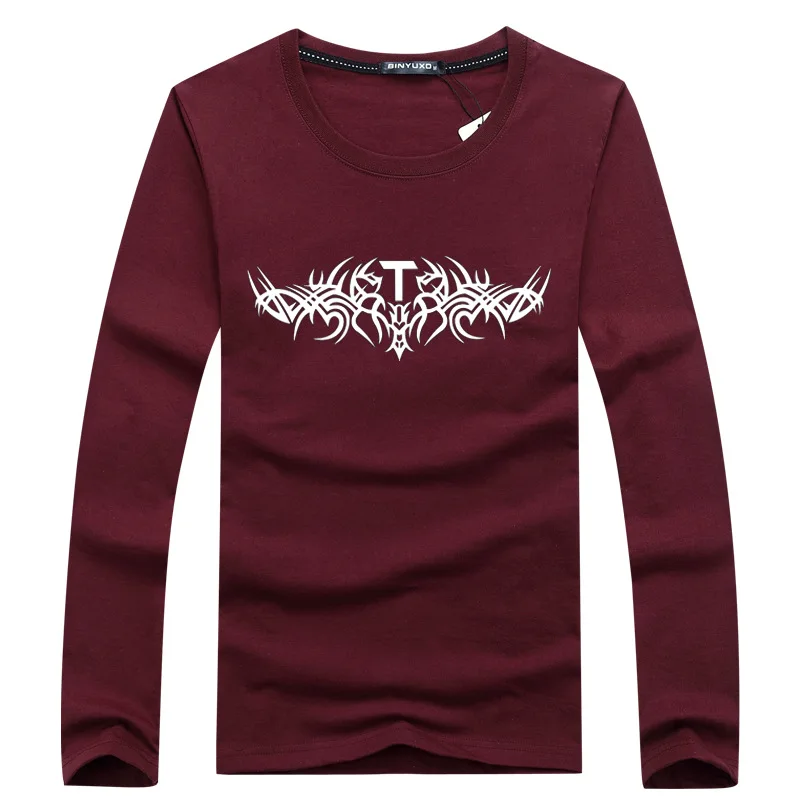 Футболка BINYUXD мужская с круглым вырезом, модная тенниска из хлопка, повседневная майка с длинными рукавами, музыка, большие размеры, Осень-зима