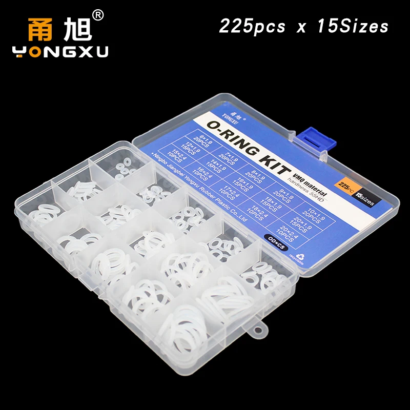 Силиконовое уплотнительное кольцо VMQ, эластичное уплотнительное кольцо, 15 Размеров, набор колец для шайбы, 225 шт.