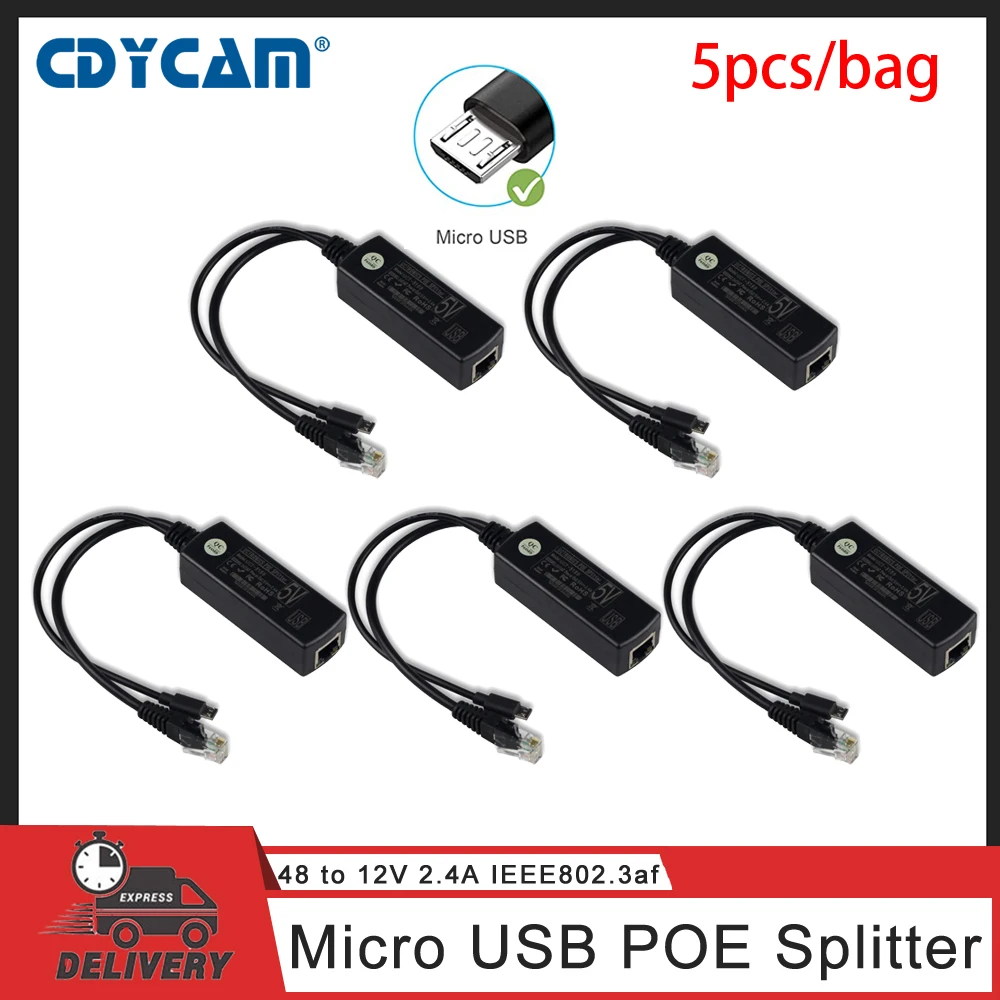 Cdycam, 5 шт., IEEE 802.3af, Micro USB, внешняя мощность, Ethernet, 48 В до 5 В, 2,4 А, для планшетов, Dropcam или Raspberry Pi