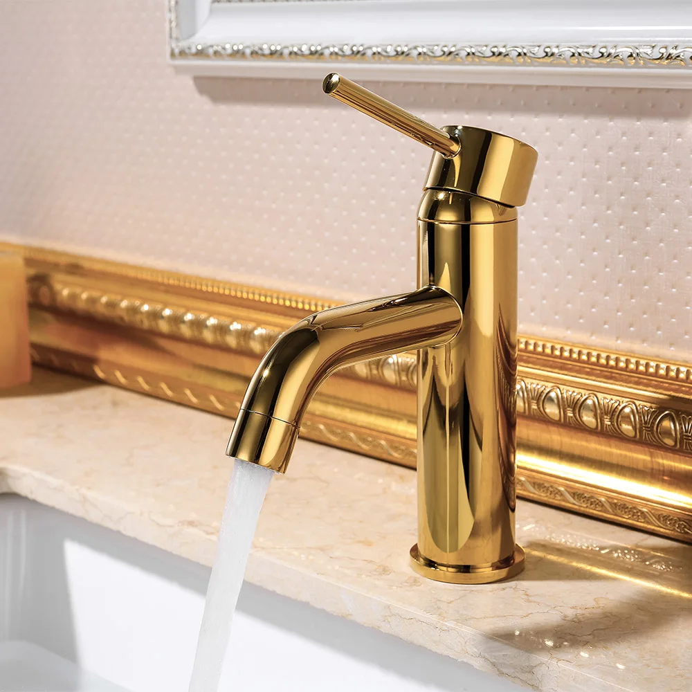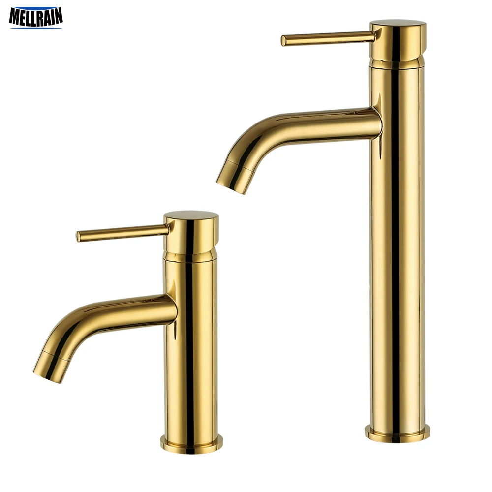 Золотистый смеситель для раковины в ванную комнату, золотистый кран для воды, круглая посуда, высотой 2 дюйма, для нижней и верхней стойки