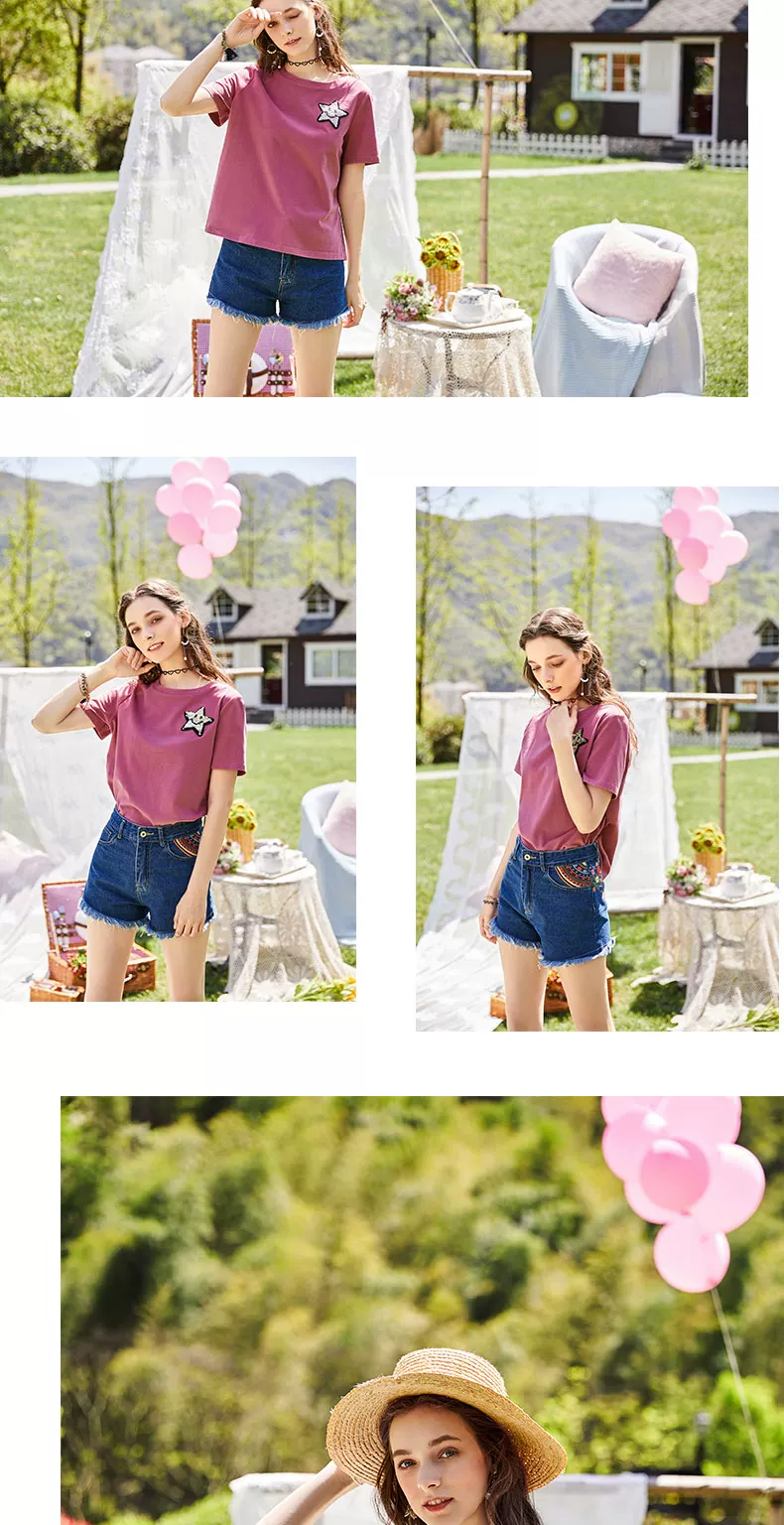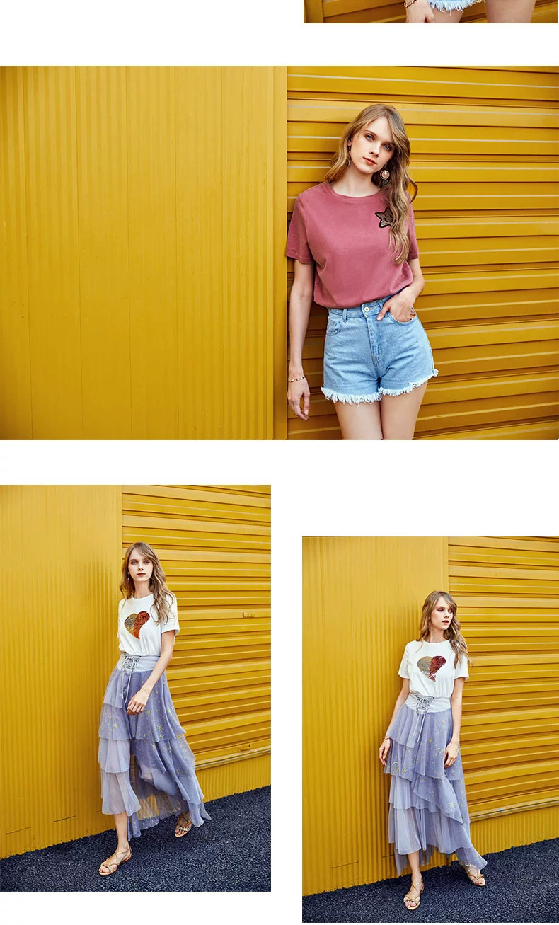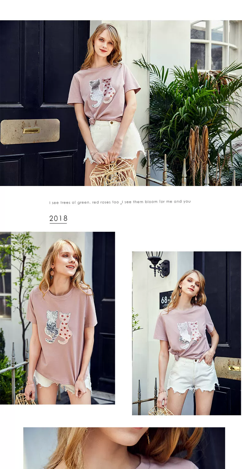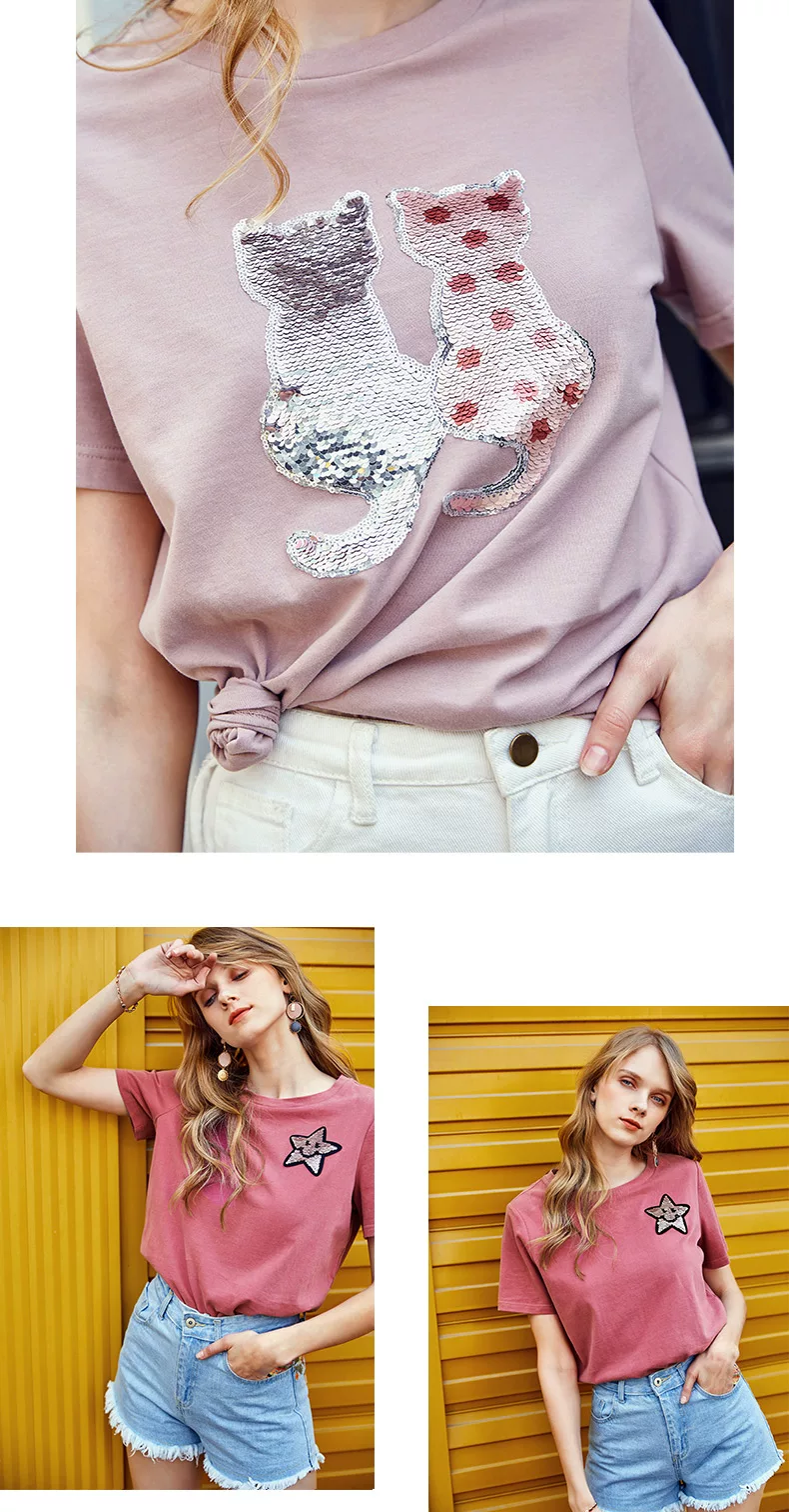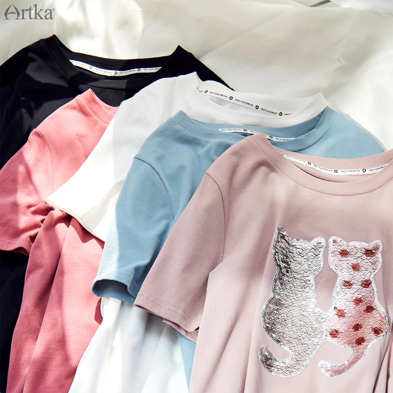 Женская футболка с различными блестками ARTKA, розовая простая свободная футболка из хлопка с короткими рукавами и круглым вырезом, TA15184X, на лето 2019