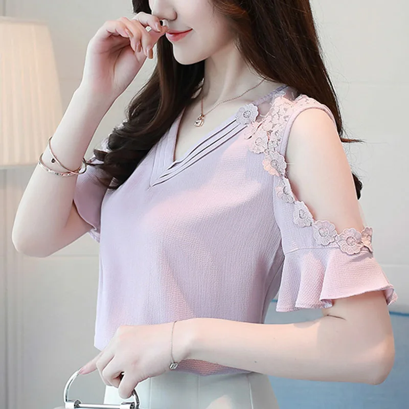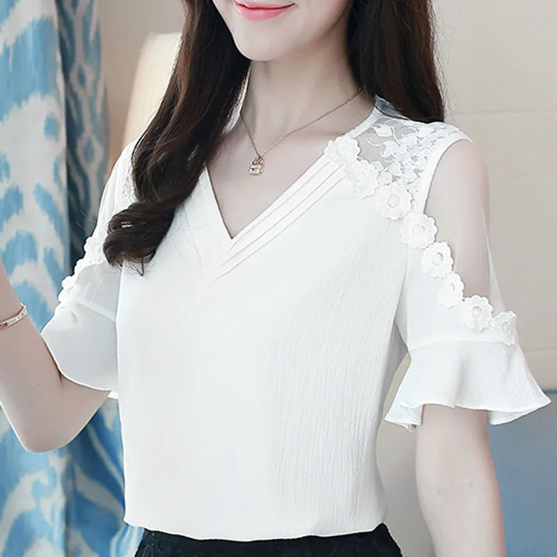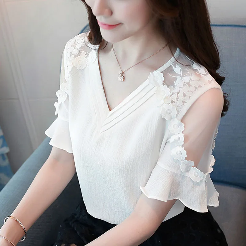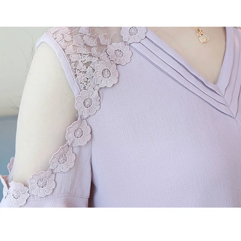 Размера плюс женская кружевная без бретелек, пикантный модный топ с коротким рукавом, шифоновая блузка, рубашка, одежда для женщин, 0052