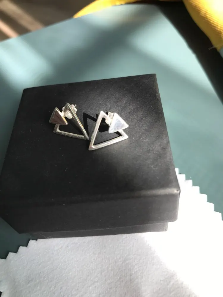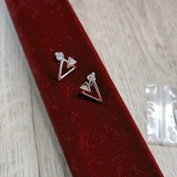 Очень понравились сережки! Небольшие, минималистичные и аккуратные. Заказ пришел быстро. Всего за пару недель с учетом, что заказывала на распродаже 11.11. Упакованы в пластиковый контейнер и продавец добавил запасные силиконовые застежки.