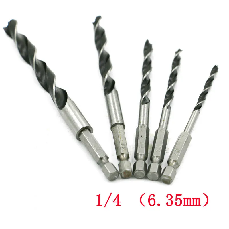Сверла по дереву с шестигранным хвостовиком 14 дюйма, 456810 мм, 5 шт.