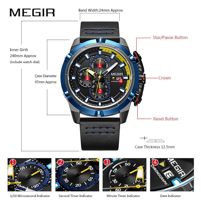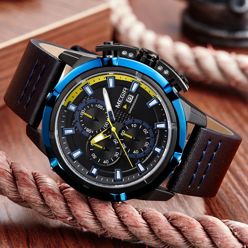 MEGIR творческие спортивные часы Для мужчин модный топ бренд Водонепроницаемый кожаный ремешок Кварцевые наручные часы мужской Relogio Masculino