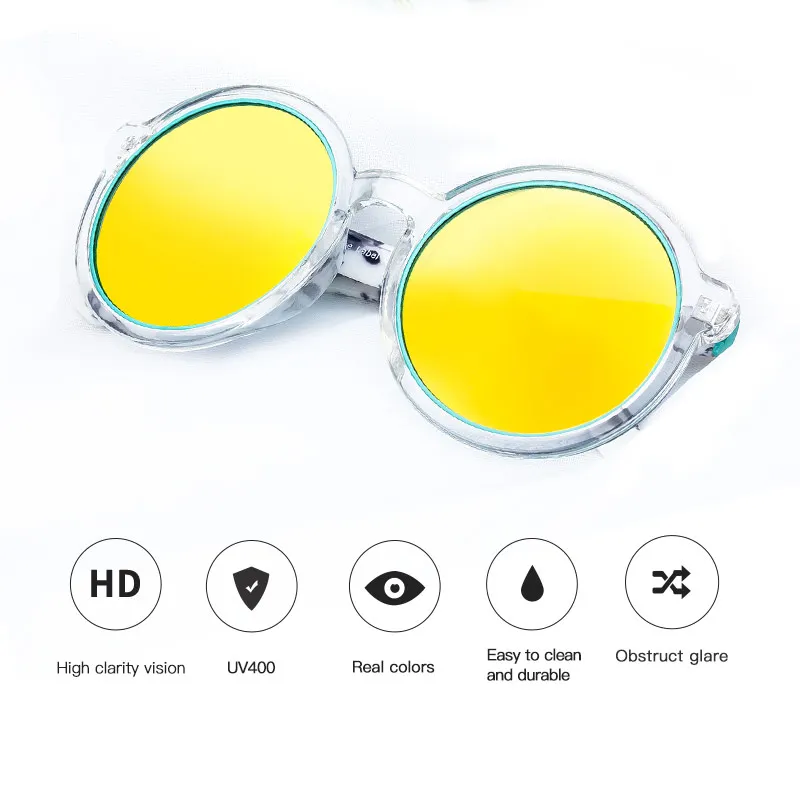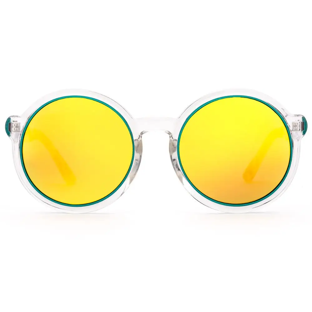 Женские круглые солнцезащитные очки COLOSSEIN, синие и желтые очки в пластиковой оправе в стиле ретро, UV400