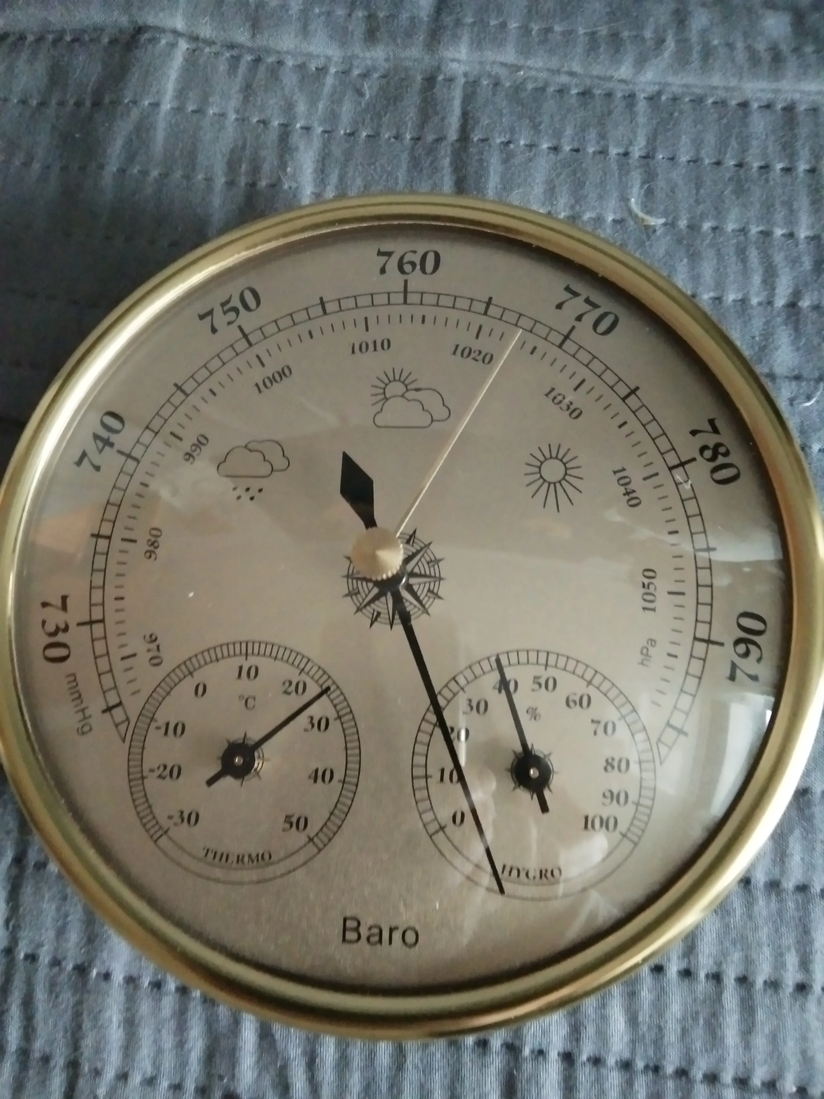 В описании не написан диапазон измерения атмосферного давления. И я не досмотрел.У нас нормальное давление находится в пределах 690 - 700 мм рт.ст. На барометре от 730 до 790 мм рт.ст.На фото видно,что ничего не видно.Для другой местности ,где давление выше 730мм рт. ст. подойдет.