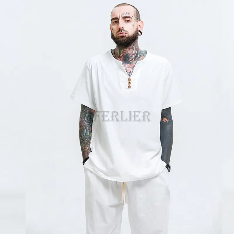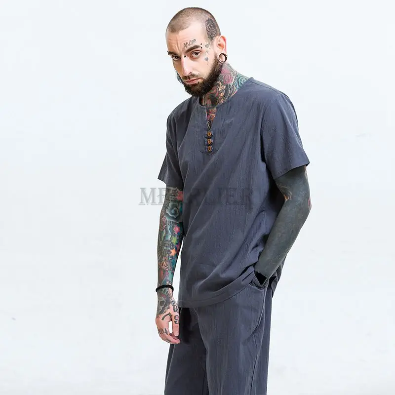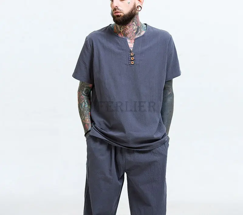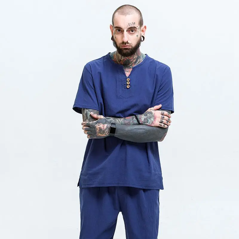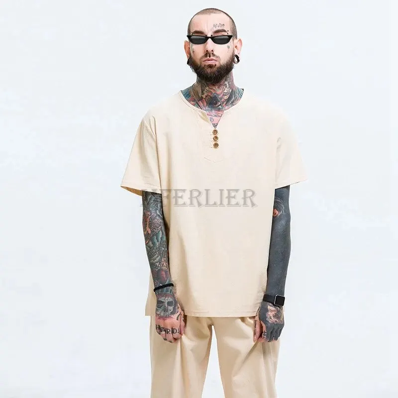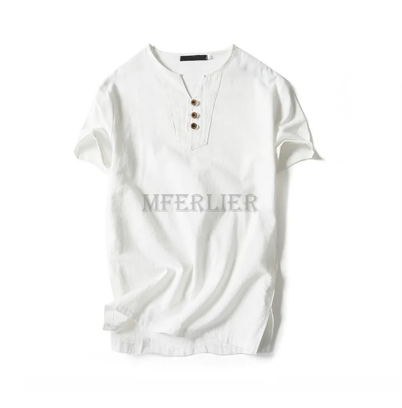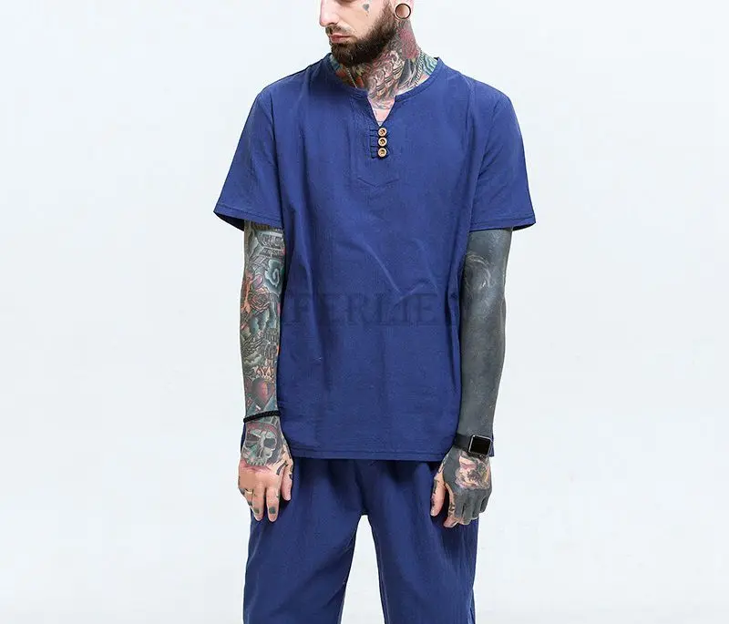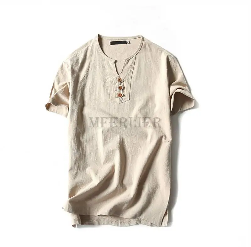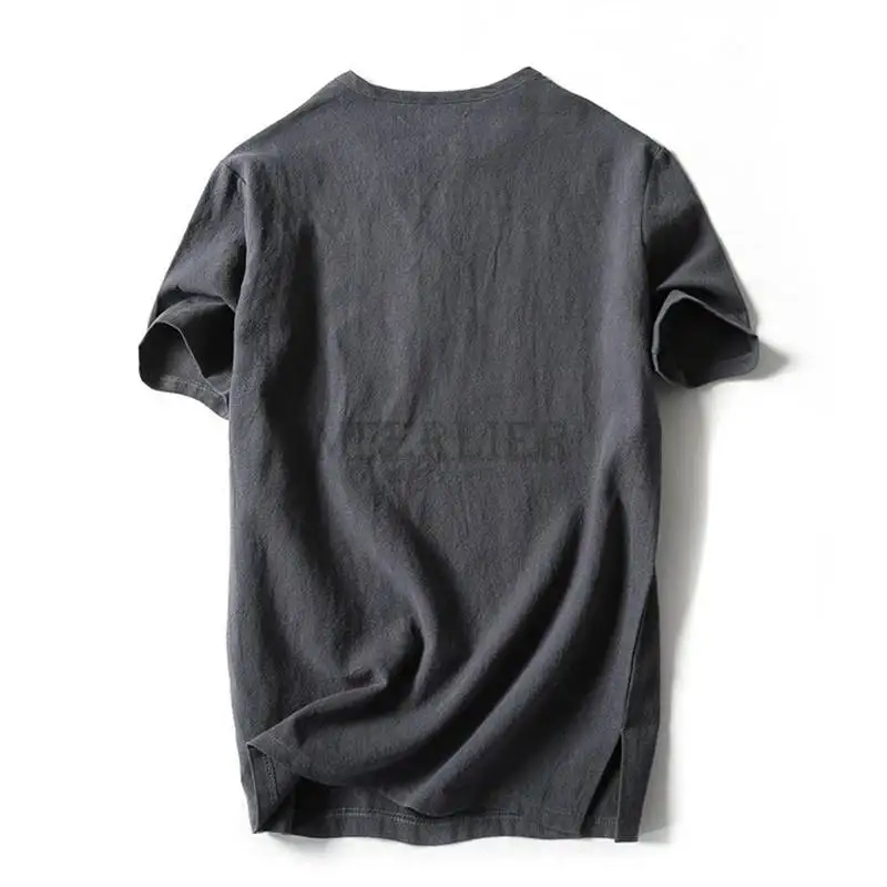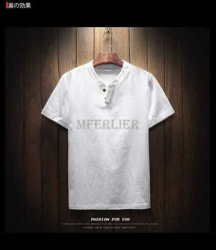 Летние мужские льняные хлопковые футболки размера плюс 11XL 160 кг, винтажные футболки в китайском стиле с коротким рукавом, хаки, синие