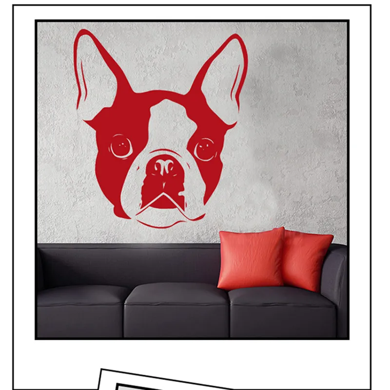 Милые наклейки на стену с животными для спальни, лицо Бостон-терьер...
