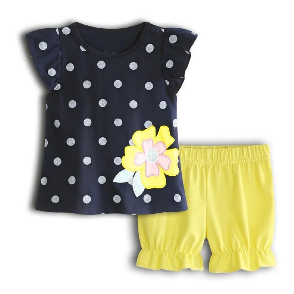 Комплект одежды в горошек для маленьких девочек, летняя одежда с принтом собаки Детские футболки штаны, комплект из 2 предметов для девочек, блузка, комплекты топы, От 0 до 2 лет