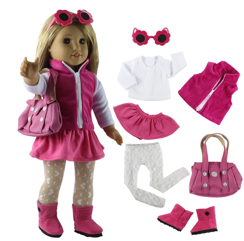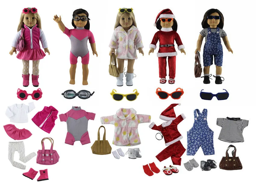 22 предмета = 5 шт., Одежда для кукол + 5 пар очков + 4 пары обуви + 4 пары носков + 3 сумки + 1 колготки для американских кукол 18 дюймов, S15