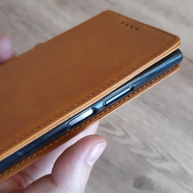 Магниты имеются, но телефон (XZ1compact) на них не реагировал. Т.е при закрывании не выключался, при открывании не включался. Пришлось вырезать из старого чехла (Brosco) и вставлять сюда. Сам чехол довольно толстый, пришлось отказаться от напоясной кобуры, в которой носил раньше, а теперь не влазит. В основном из-за совершенно ненужного "держателя для карт". Если туда еще и карты засунуть....