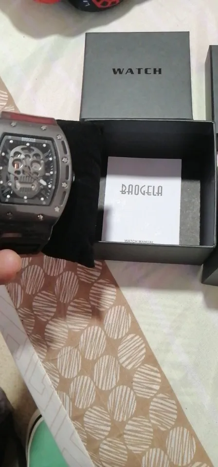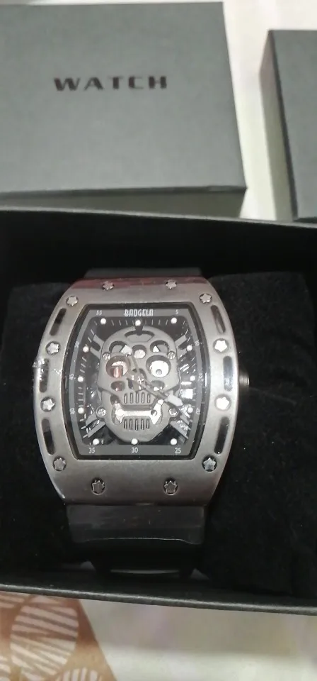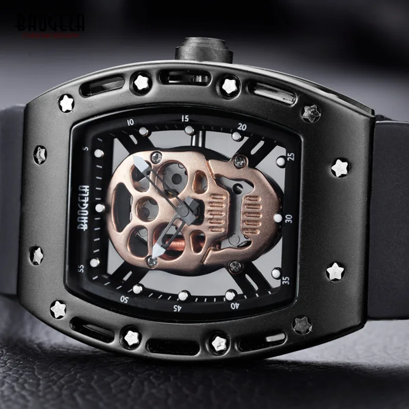 Мужские кварцевые часы BAOGELA, аналоговые спортивные наручные часы с черепом и силиконовым ремешком, 1612
