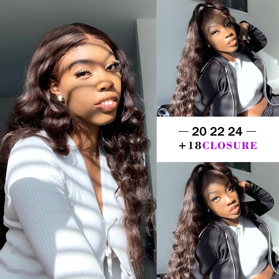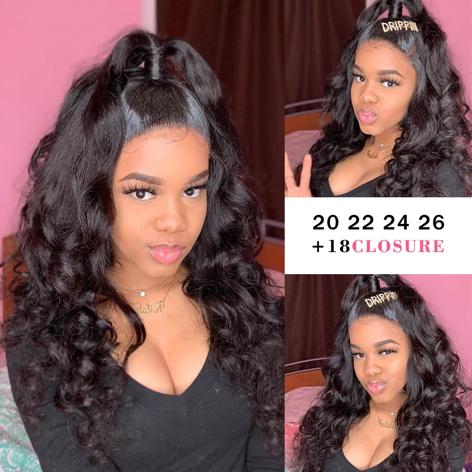 Свободные волнистые пучки с застежкой 4*4 6*6, бразильские плотные волосы с застежкой 180%, пупряди с париком на 4*4
