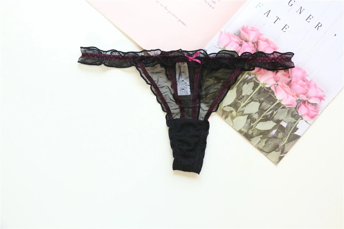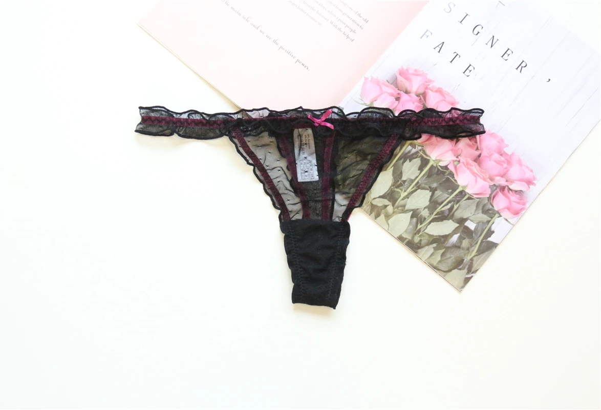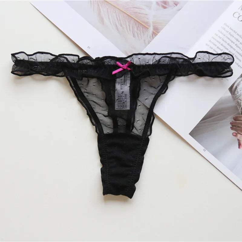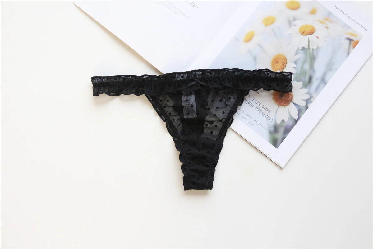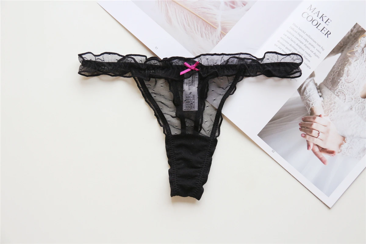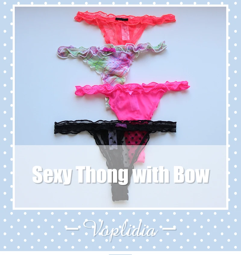 Нижнее белье Voplidia, женские трусики размера плюс, с бантиком Сексуальное белье, стринги, стринги, кружевные, Т-образные, бесшовные, с оборками, танга PM041