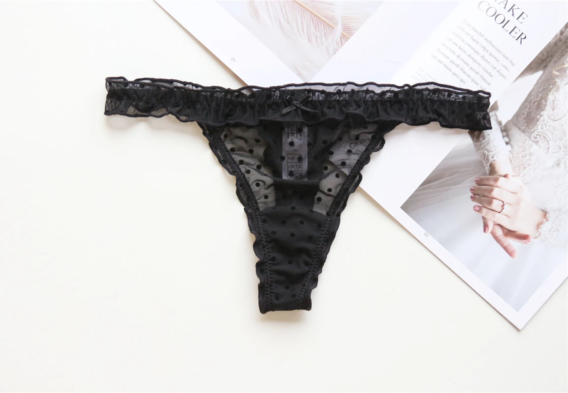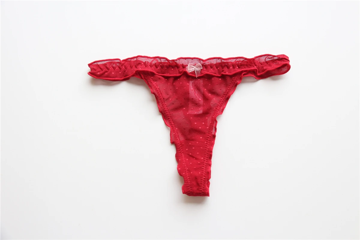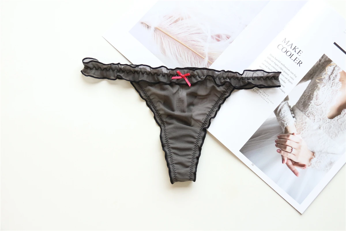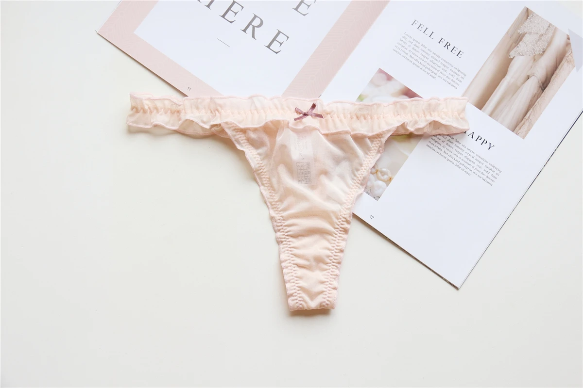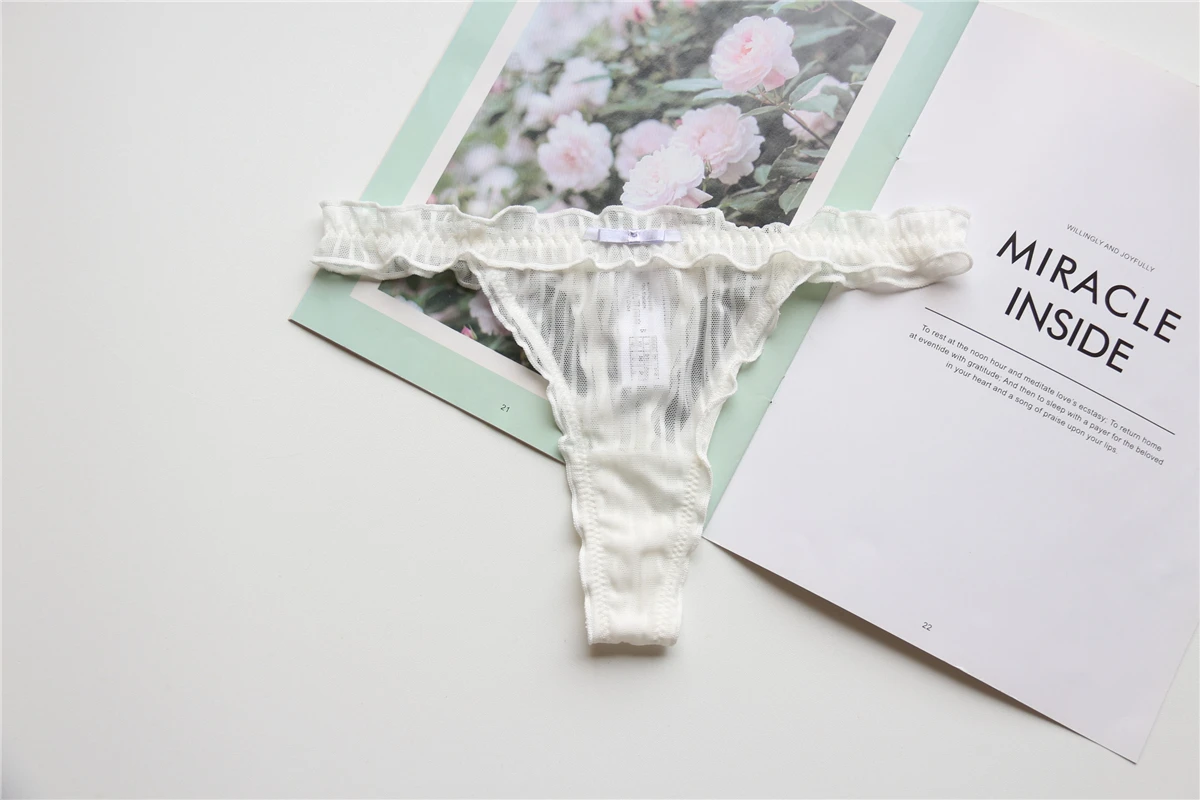 Нижнее белье Voplidia, женские трусики размера плюс, с бантиком Сексуальное белье, стринги, стринги, кружевные, Т-образные, бесшовные, с оборками, танга PM041