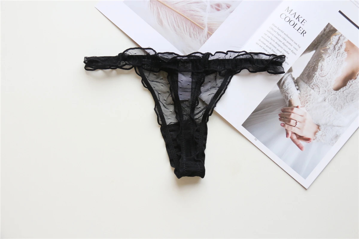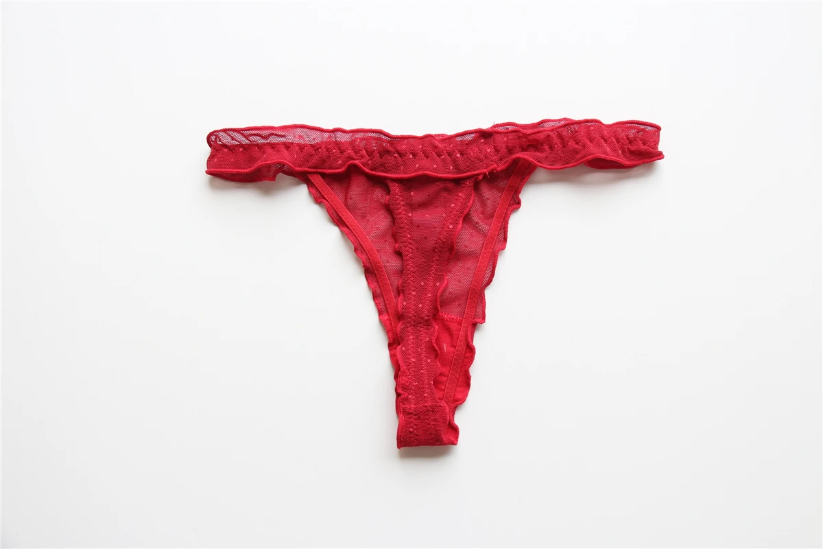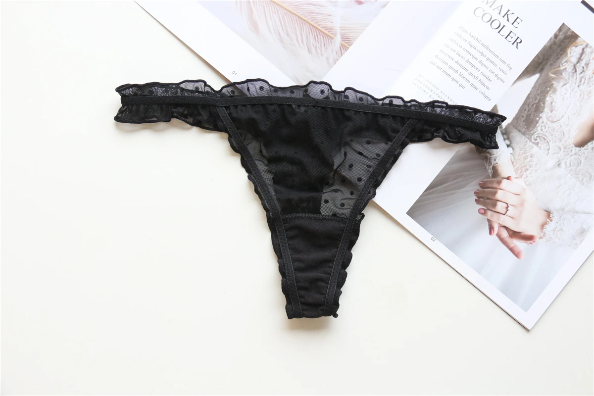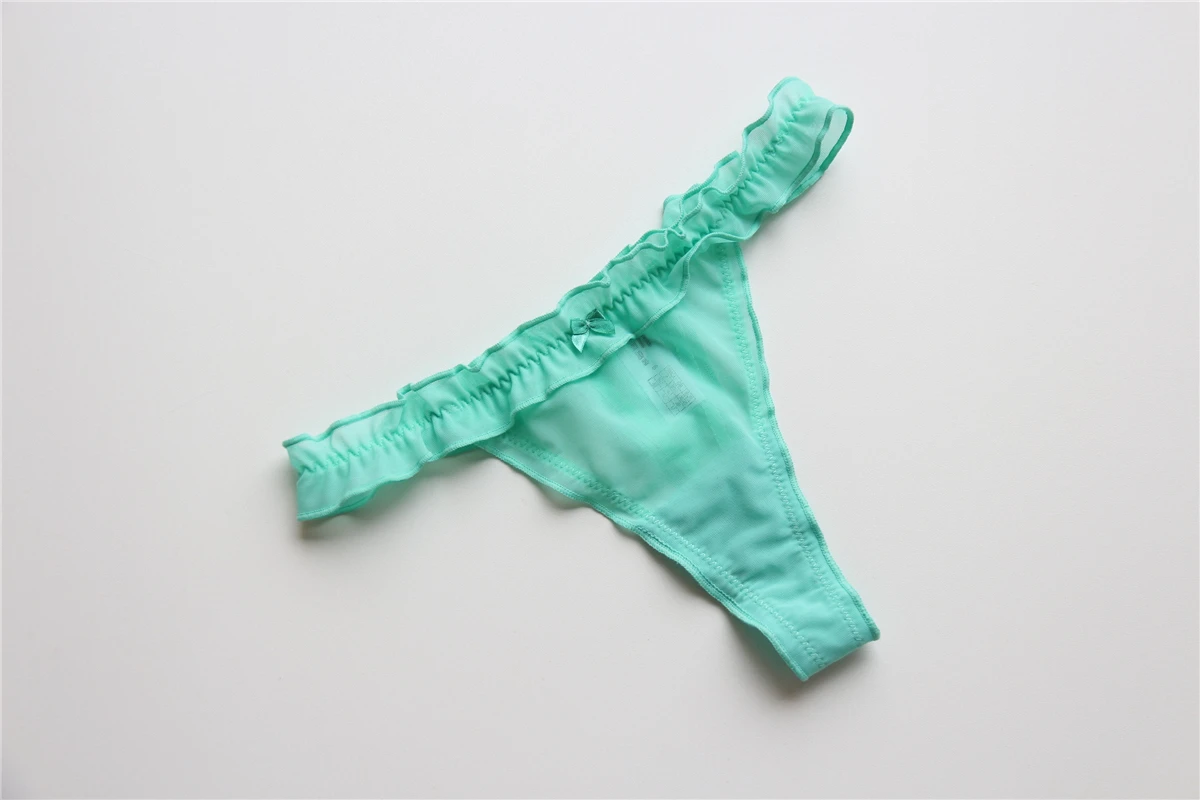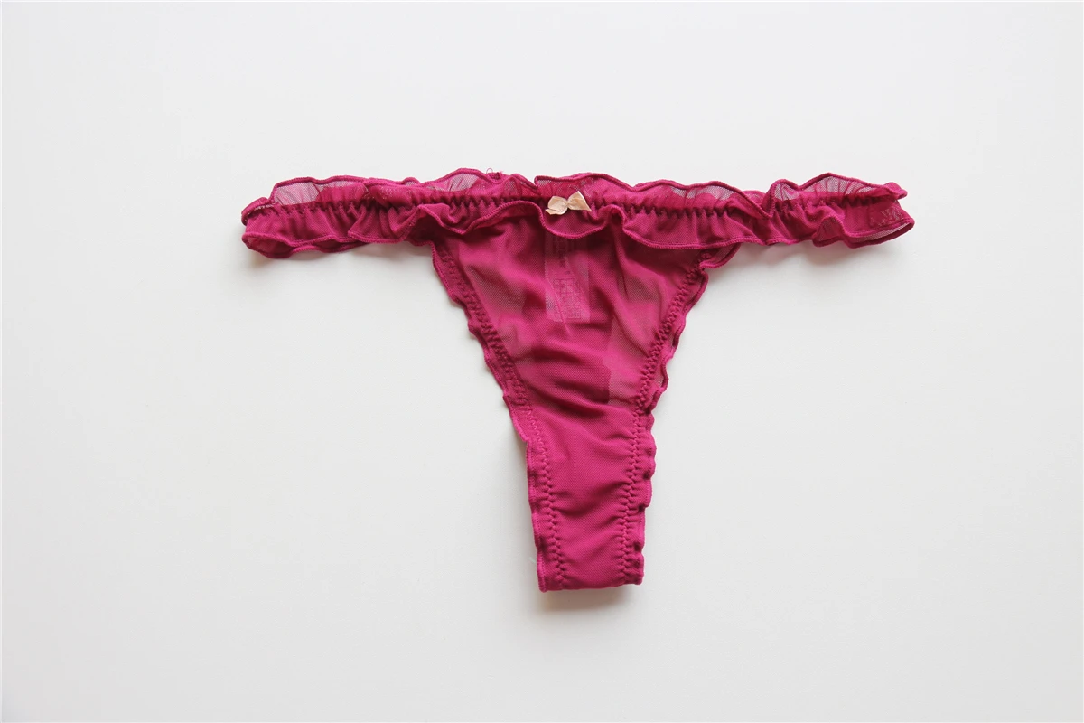 Нижнее белье Voplidia, женские трусики размера плюс, с бантиком Сексуальное белье, стринги, стринги, кружевные, Т-образные, бесшовные, с оборками, танга PM041