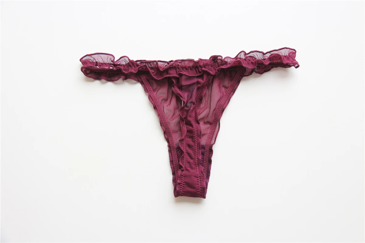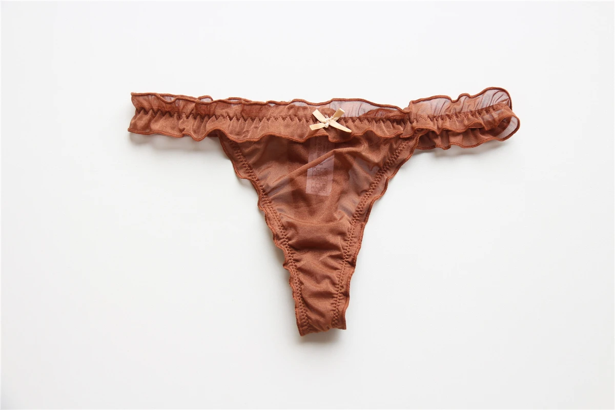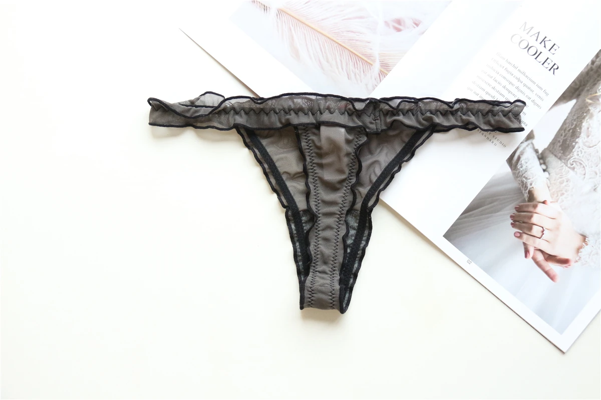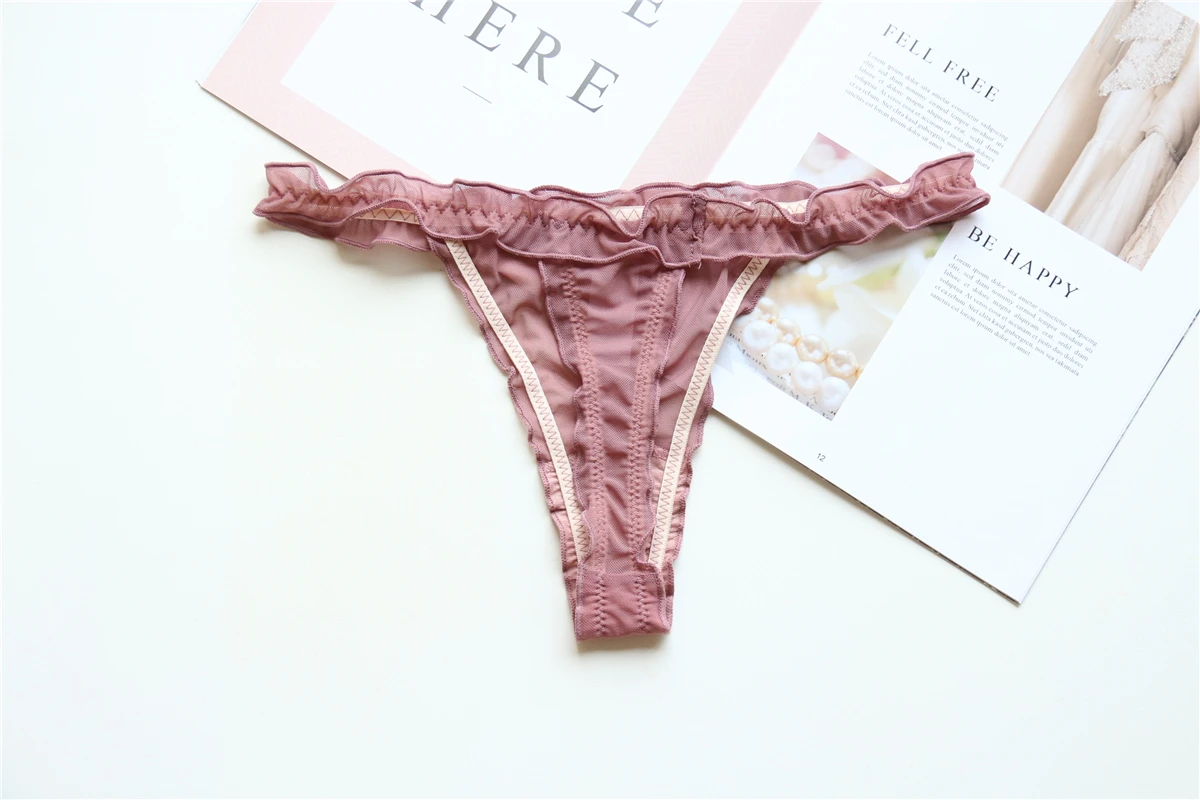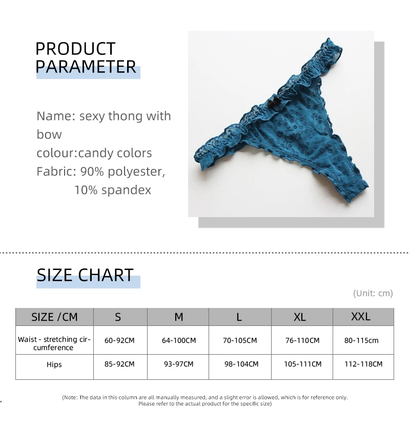 Нижнее белье Voplidia, женские трусики размера плюс, с бантиком Сексуальное белье, стринги, стринги, кружевные, Т-образные, бесшовные, с оборками, танга PM041