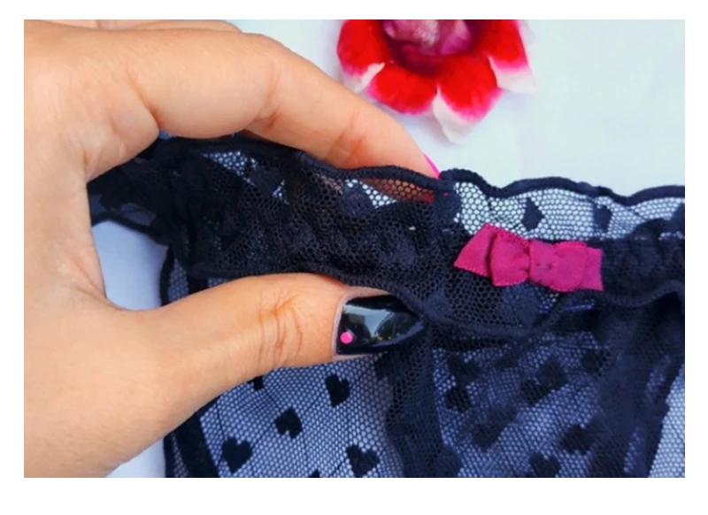 Трусики - стринги. Изготовлены из сетчатой ткани, гипюра. На ярлычке указано 90 - Полиамид, 10 - Эластин. Ткань полупрозрачная. Тонкая и нежная. При н0ске не колючая и комфортная. На выбор 20 цветов. У меня черный вариант - ткань сеточка и ромбики с сердечками Верх, все края и боковину в виде волнистых рюш Есть украшение в виде бантика винного цвета Также в трусиках есть ластовица. Ластовица хлопковая. Швы нормальные. Нигде не разошлись. Ниток торчащих не было. На мои 67-93 взяла XL и трусики огромные. На фото я подколола, но а в жизни просто висят на мне. Нужно на пару размеров брать Подробности и много фото в Фанзоне #AliExpress #Olli° , Instagram Ollitao и Facebook Olli Itao