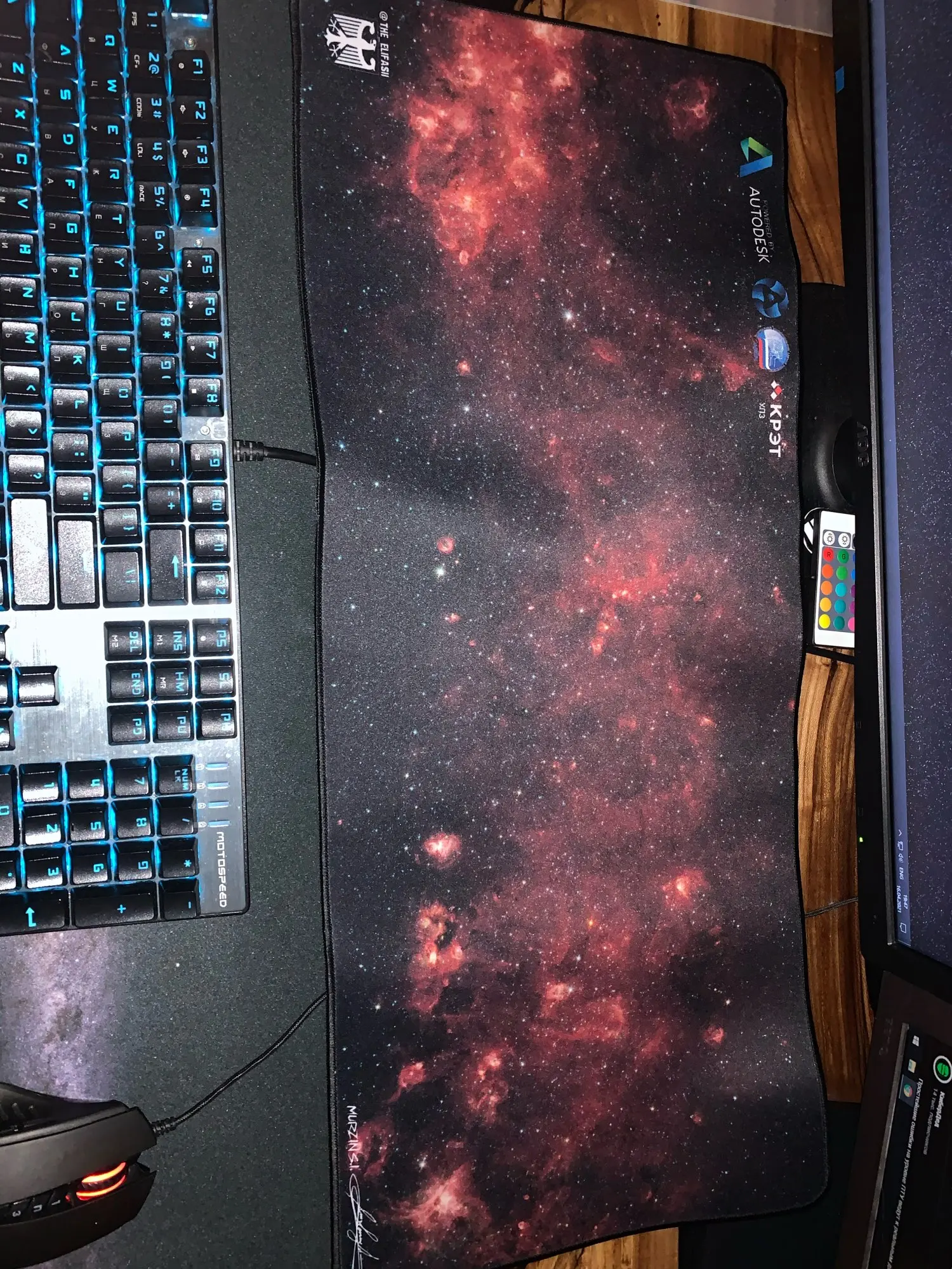 О: мы используем naНатуральная Резина внизу, резина может быть использована для предотвращения скольжения, а коврик для мыши изготовлен из ткани, которая может сделать вашу мышь более гибкой