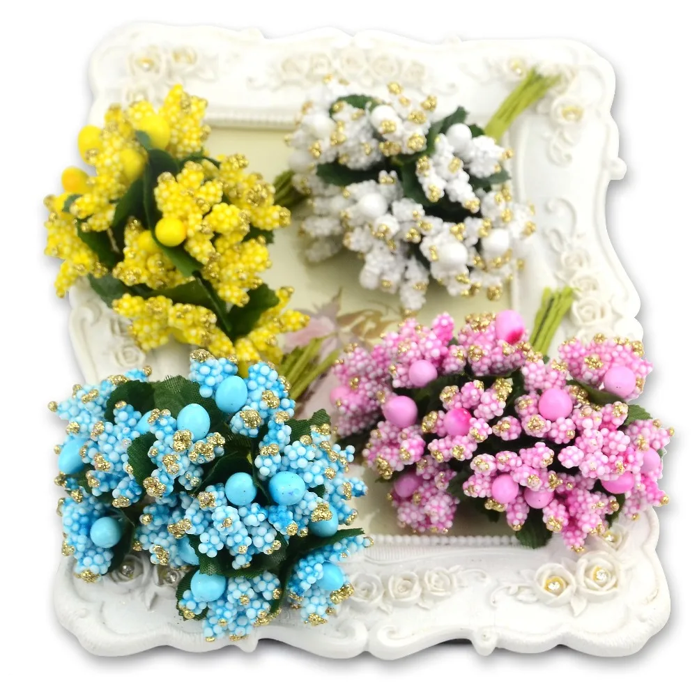 12 шт.лот Pe мини тутового вечерние искусственный цветок, тычинки, стебель проволоки, свадебные листья, маленькие тычинки, свадебные украшения
