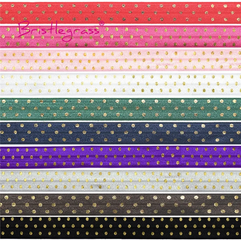 BRISTLEGRASS 5 ярдов 5/8 "15 мм золотой узор в горошек фольга печать сгибается на резинки FOE ленты из спандекса повязка на голову платье-пачка Шитье