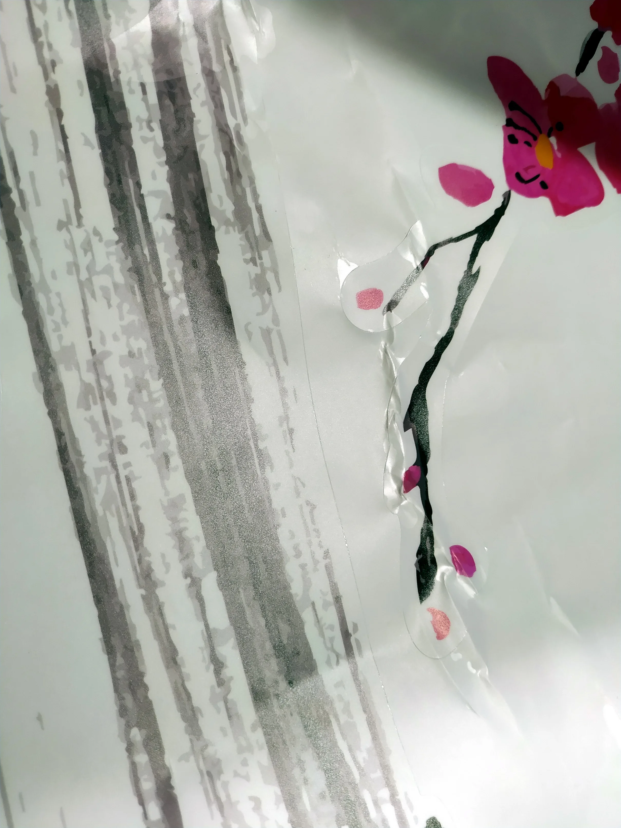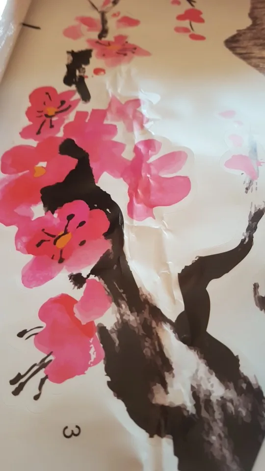 К продавцу претензий нет. Наклейка плотная, поверхность матовая, прозрачная, принт яркий, контрастный. Если что то не получиться возможно аккуратно отклеить и приклеить как надо. На всю наклейку ушло минут 30 с вырезом всех стыков между плиткой. На самом полотне есть подробная пронумерованная схема клейки. Продавец смотал полотно вокруг плотной паралоновой палки. Отлечилась наша почта России умудрясь смять всё это.