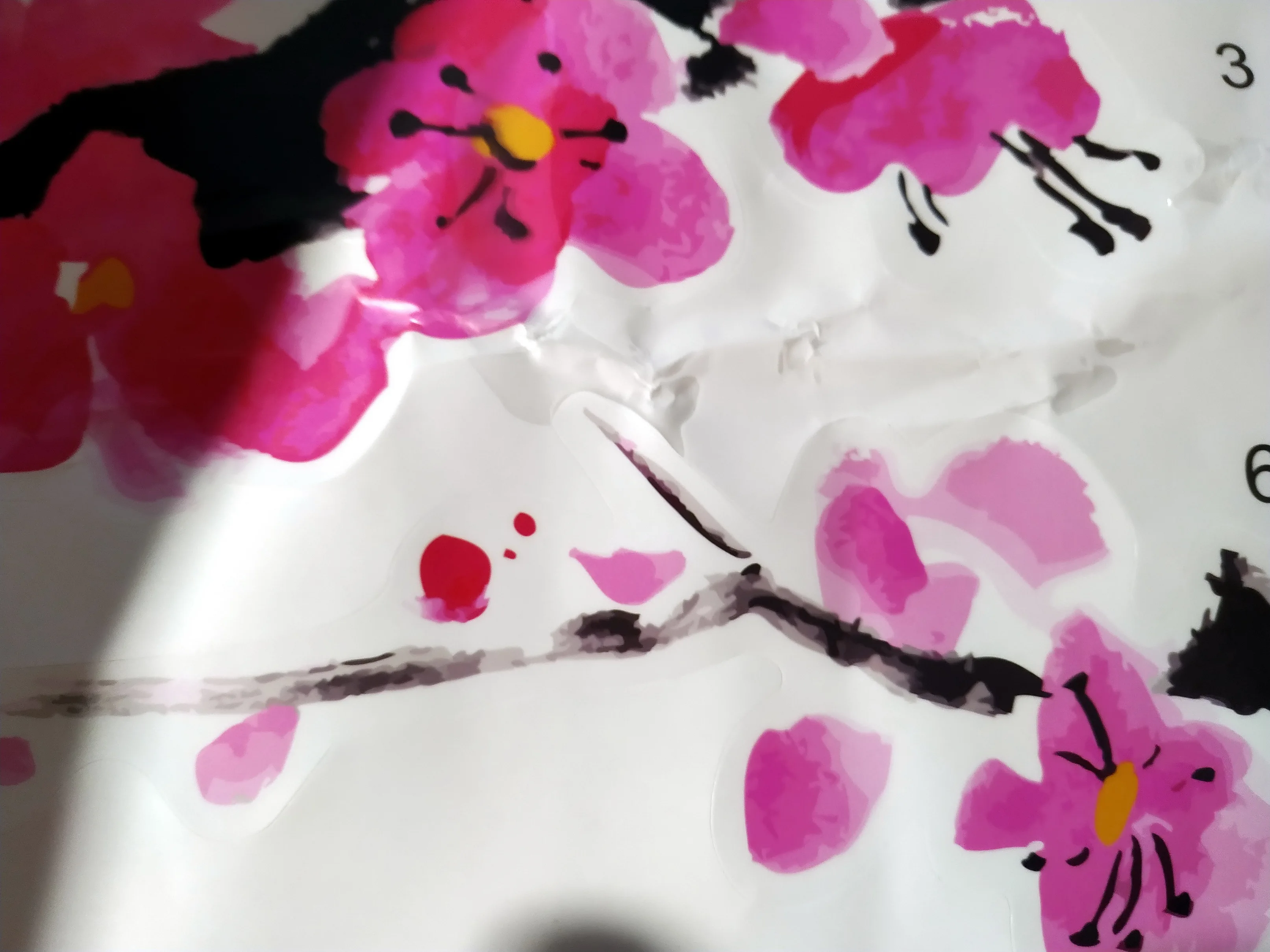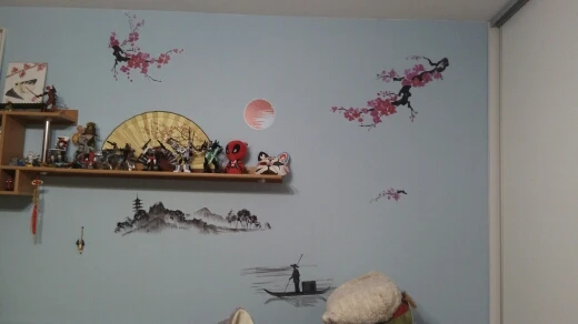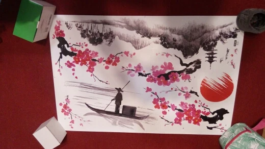 Очень легко приклеилось. Сразу немного отклеилось, но после того, как второй раз хорошо прижали, больше не отклеивалось. Для этого рисунка даже не пришлось ничего вымерять, все хорошо получилось на глаз. Детали наклейки достаточно большие, что очень удобно. Единственный минус - очень долгая доставка: до США шло больше двух месяцев.