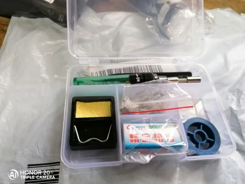 набор маленький. пришёл быстро. просила продавца упаковать надёжно, но увы ( разбилась канифоль а так очень хороший набор.