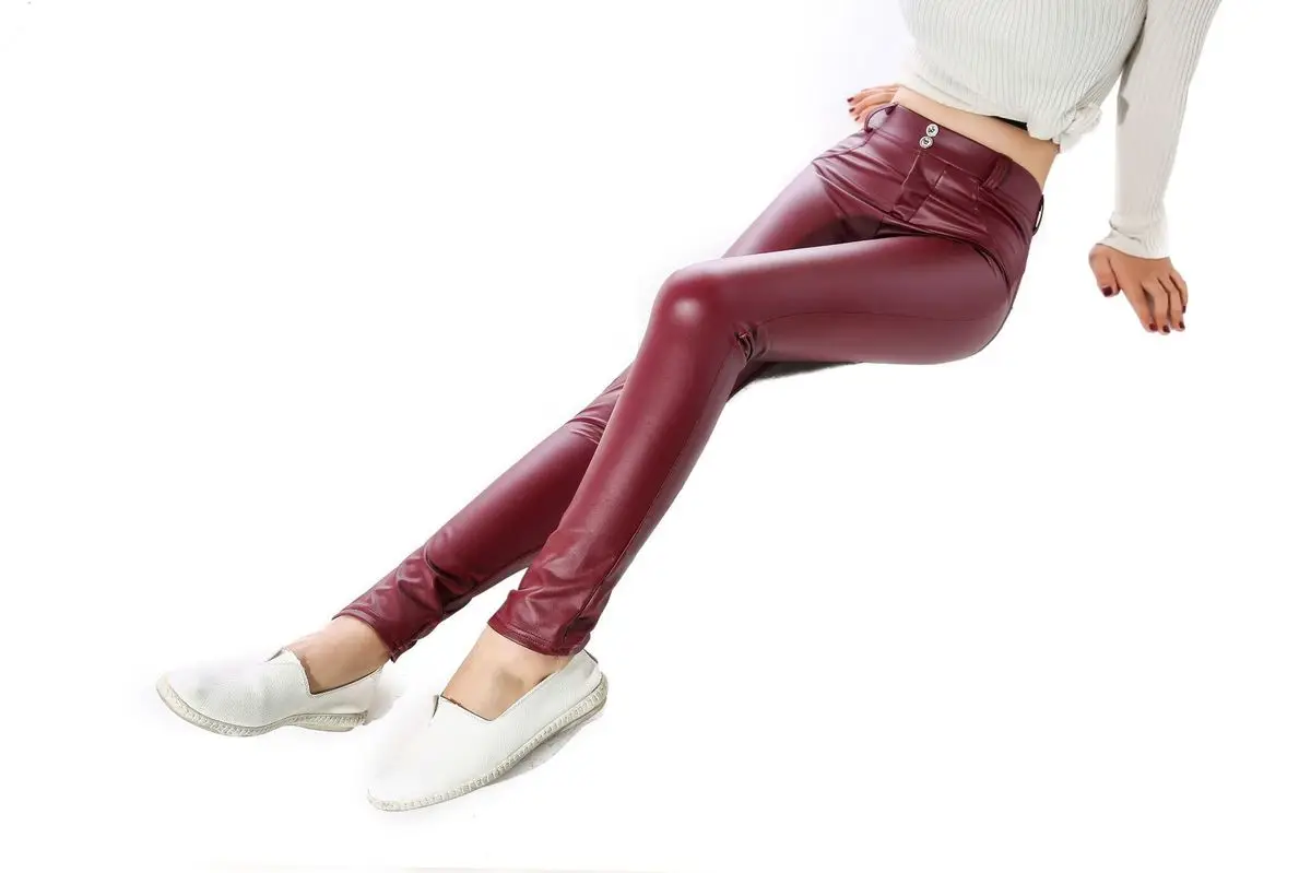 Женские кожаные брюки из ПУ кожи, с эффектом персикового подтяжки