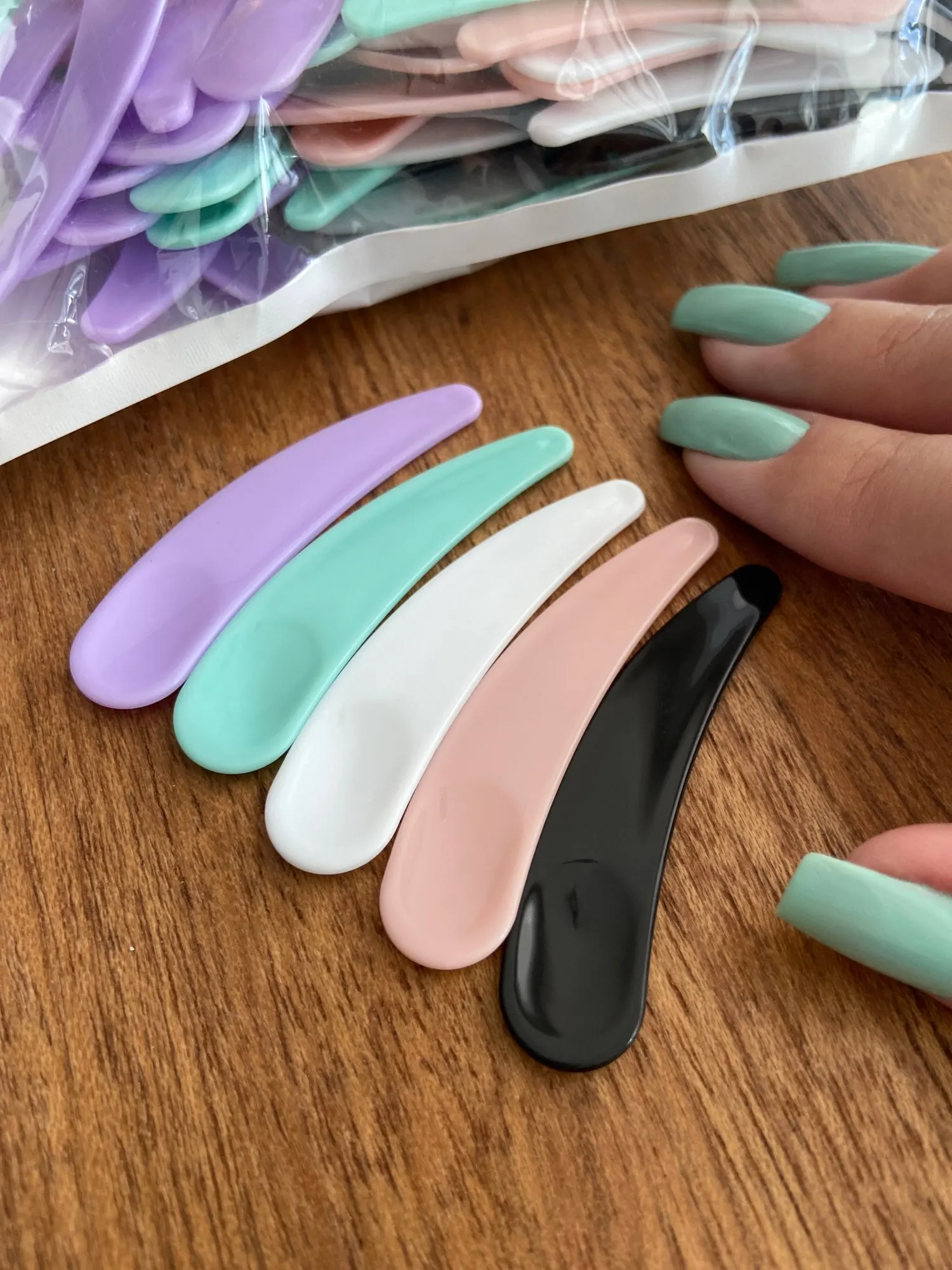 100 шт.лот мини Косметическая лопатка ложка одноразовая маска белая черная зеленая фиолетовая пластиковая ложка инструмент для макияжа 5,5 см