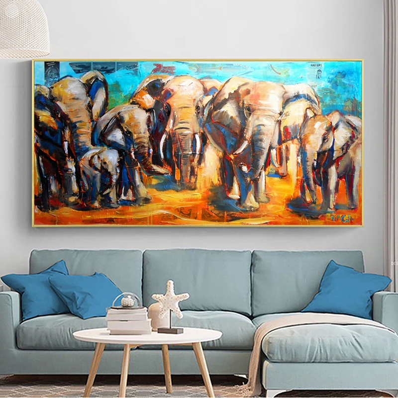Красочный слон животные холст живопись абстрактный мать и ребенок плакаты и принты настенные картины гостиная Декор без рамки