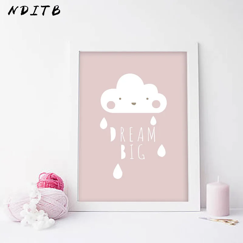 Настенная Картина на холсте NDITB для маленьких девочек, мультяшный постер с розовыми облаками и цитатами, Детские декоративные картины в скандинавском стиле