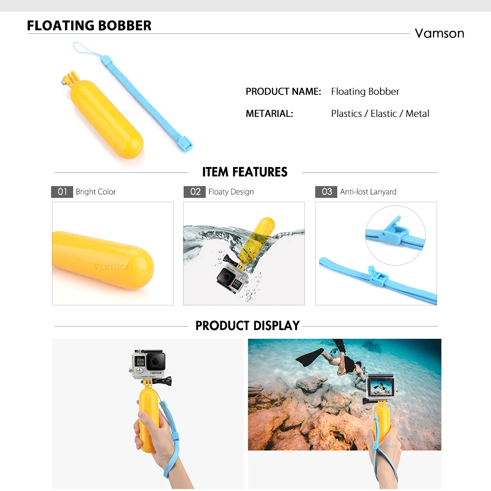 Комплект аксессуаров Vamson для Gopro Hero 10 9 8 7 6 5 4, нагрудный ремень, плавающий поплавок, адаптер для Yi 4K, для SJCAM, для камеры Eken