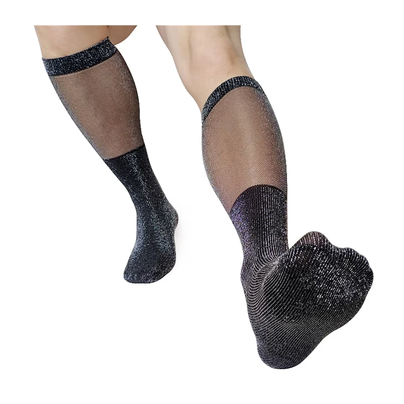 Носки мужские длинные высокоэластичные, пикантные прозрачные сетчатые с блестками, формальные, модные чулки для гомосексуалистов