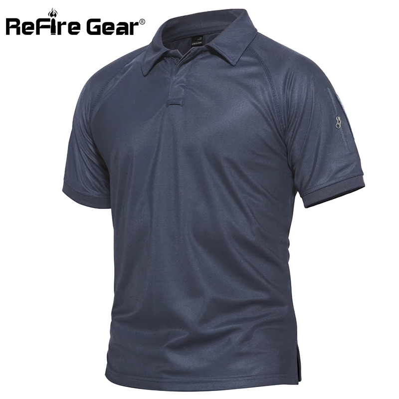 Мужская быстросохнущая рубашка-поло ReFire Gear, темно-синяя воздухопроницаемая рубашка-поло с короткими рукавами, S-5XL