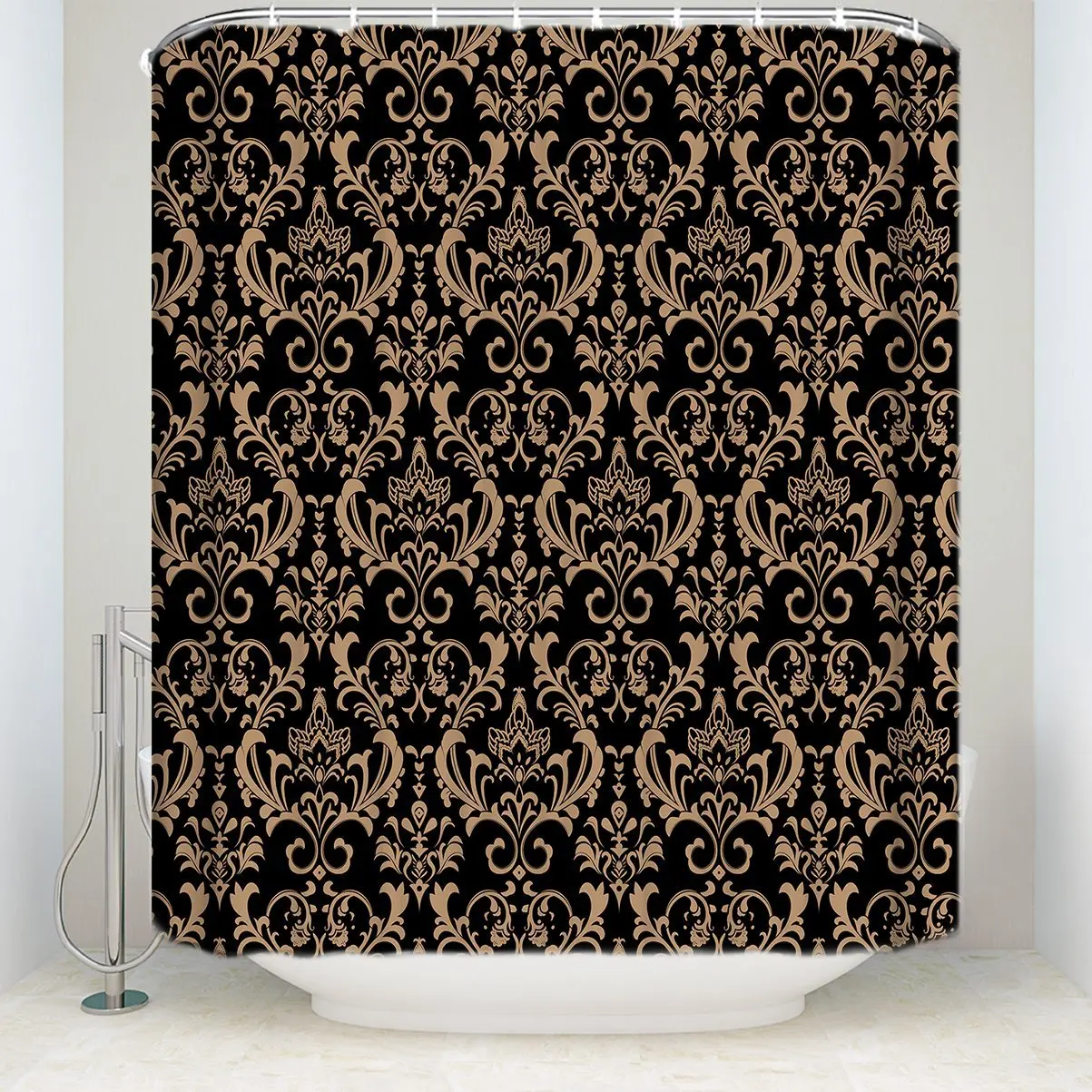 Занавеска для душа в классическом стиле с красивым узором черного и золотого цвета, мягкая, удобная занавеска для душа с крючками, 72x78 дюймов