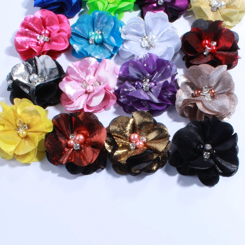 120 шт. 5,5 см Модные металлические цветы с жемчужинами для заколки для волос, красивые цветочные цветы для обуви, одежда, головной убор