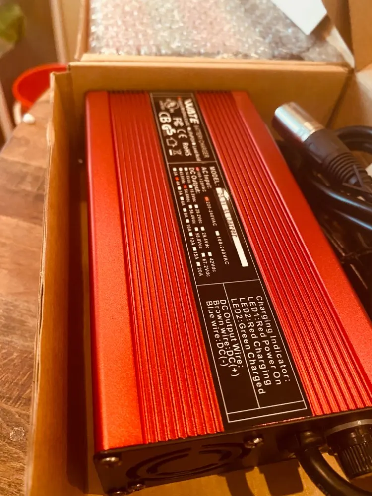 2. Выходная мощность: 240 Вт3. Выходное напряжение постоянного тока: 54,6 в 4A4. Светодиодный светильник-индикатор с логотипом: красный и зеленый, инструкции по двойному цвету, красная зарядка зеленого цвета или в режиме ожидания5. Эффективность: >85%6.MTBF: 30000 часов7. Основные Экспортные рынки: Азия/Восточная Европа/Средний Восток/Африка/Австралия/Северная Америка/Центральная/Южная Америка/Западная Европа
