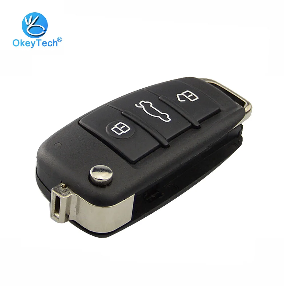 Чехол для автомобильных ключей OkeyTech, раскладной, с 3 кнопками, для Audi A6L, Q7, A2, A3, A4, A6, A6L, A8, TT