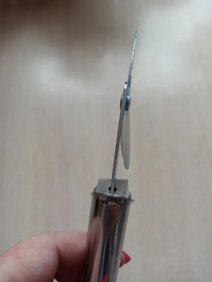 хлипкий, пришел с мятой ручкой, но не критично. пока не резал, увидим) может потом дополню