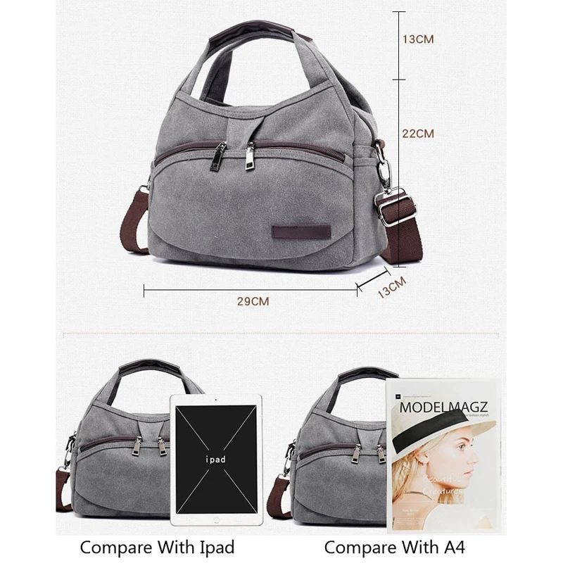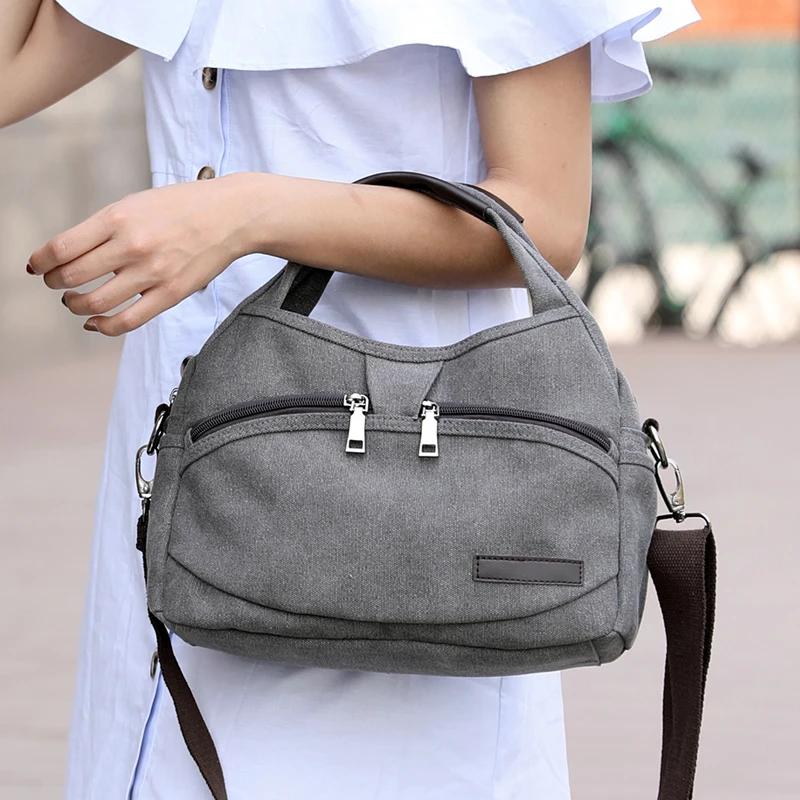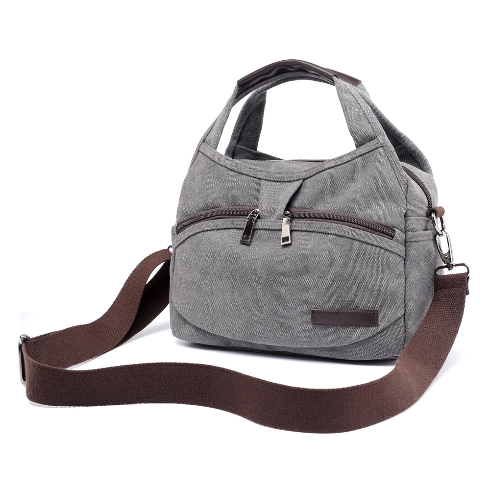 Холщовые дамские сумочки, Хобо на одно плечо, винтажные однотонные сумки через плечо с несколькими карманами для женщин