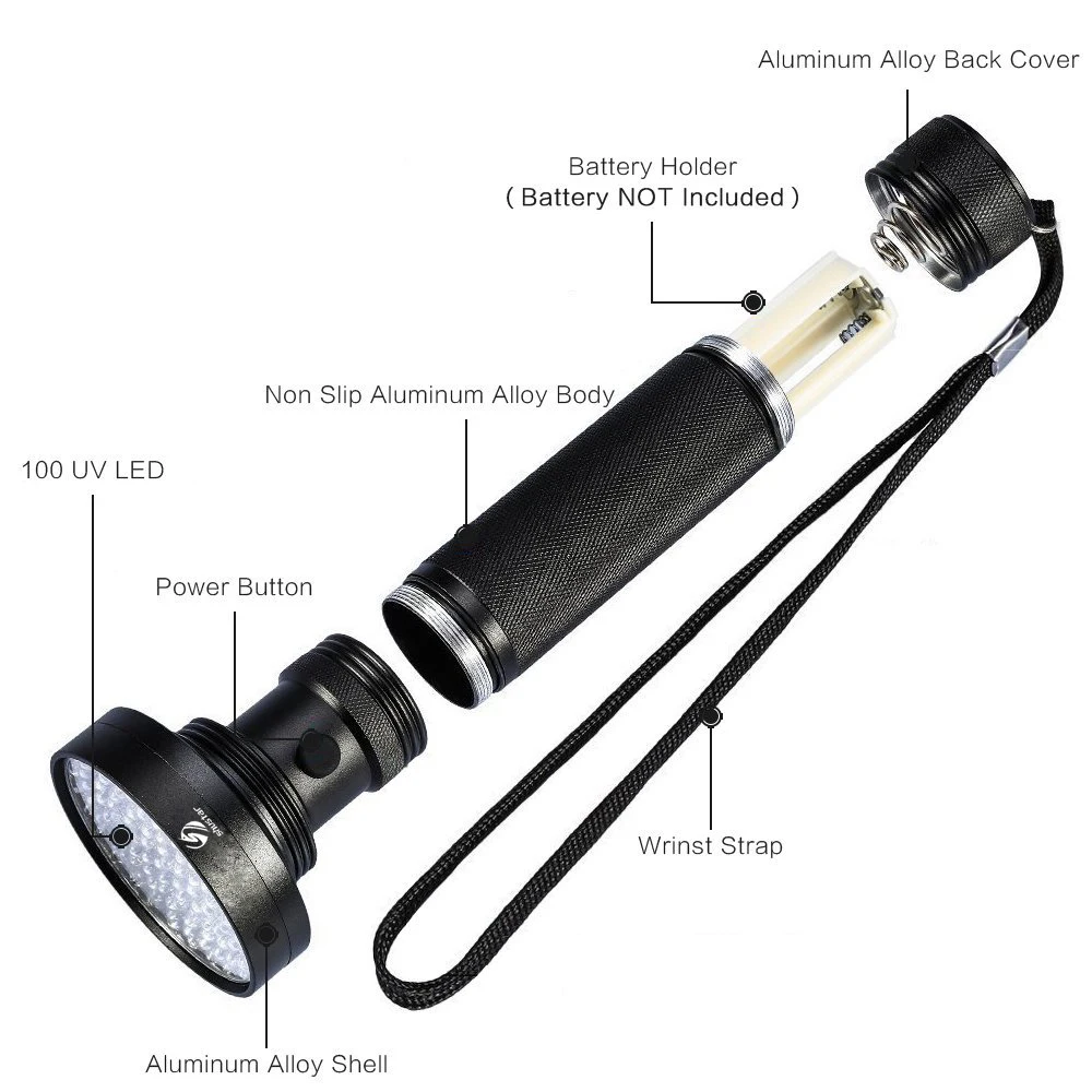 ❤Большой охват и яркость-УФ светодиодный светильник 100 (срок службы лампы: 100000 часов) в голове вспышки излучают мощную длину волны нм, который покрывает большую площадь, не теряя интенсивности УФ светильник ения, излучает мощные ультрафиолетовые лучи длинной волны. Будьте достаточно прочны, чтобы он мог объекты даже на расстоянии 50 футов! Ультрасветильник принимает батареи 6AA и большую головку светодиодный дами 100 делает этот фонарь мощнее и ярче, чем другие продукты.