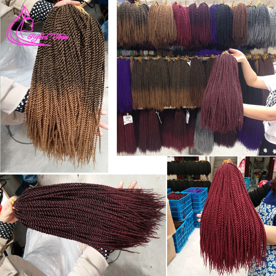 Утонченные волосы 14, 18, 22 дюйма, 30 корней, Сенегальские твист, вязаные крючком волосы для наращивания, Омбре, черные, коричневые, серые, красные синтетические волосы для косичек