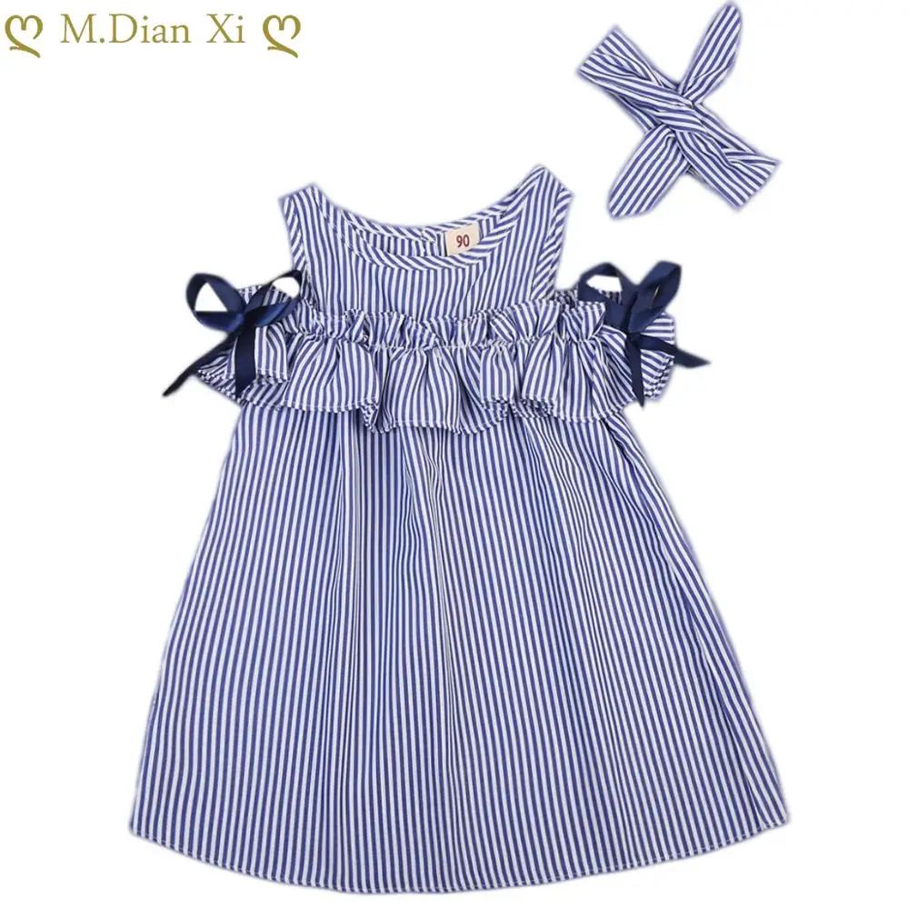 Hot 2018 New Summer Dress Toddler Kids Baby Girls Lovely Birthday Clothes Blue Striped Off-shoulder Ruffles Party Gown Dresses